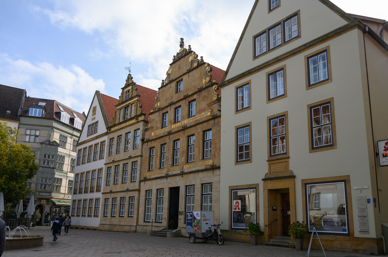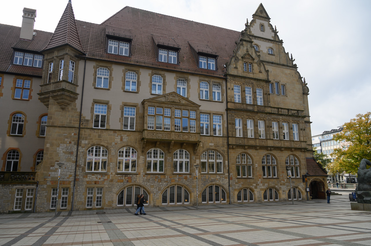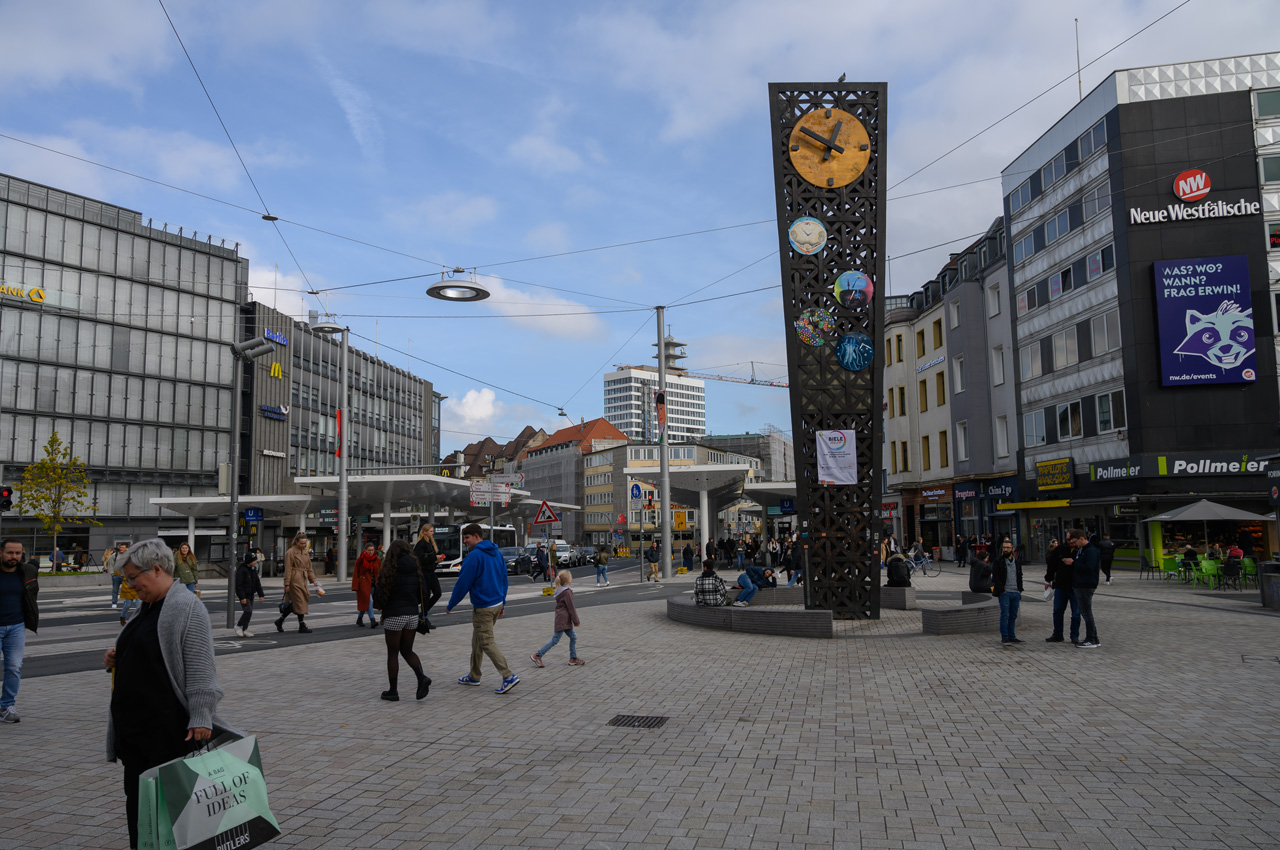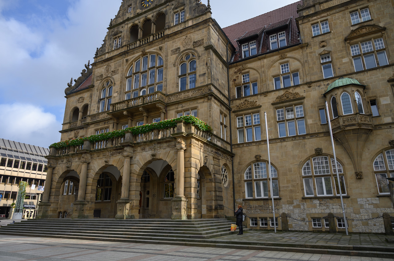 Unser Navi führte uns vom Stellplatz Greven nördlich auf die Landstraße B475. Auf der sind wir bis Bad Rothenfelde geblieben. Auf der ging es dann Richtung Osten bis zur A33. Auf der ging es dann süd-östlich in Richtung Bielefeld. Bei Steinhagen haben wir die A33 dann wieder verlassen und nun ging es nur noch auf Landstraße bis zum Stellplatz in Bielefeld. Unsere Befürchtung, dass es bei 10 Stellflächen nichts mehr frei sein könnte, war umsonst. Von den 10 Plätzen waren nur vier Plätze belegt. Also konnten wir uns wieder einen Platz aussuchen. Die Plätze sind gut und professionell gestaltet. Man steht auf Pflaster und hat aber zwischen den Bereichen einen breiten Rasenstreifen. Unser Womo war schnell benutzbar und wie immer haben wir in aller Ruhe einen Zwischenkaffee getrunken. Nach dem Kaffee habe ich mich alleine auf den Weg gemacht um einen Bäcker zu finden. Susanne hat heute wieder Schontag für ihren Fuß. Ich bin über den sogenannten Johannisberg gelaufen. Von dem gilt es gute 100 Meter Höhenunterschied bis zur Altstadt zu überwinden. Auf dem Hinweg leichter als auf dem Rückweg. Die Altstadt fand ich recht sehenswert und nun freue ich mich schon darauf morgen mit Susanne sie zu erleben. Einen Bäcker habe ich unterwegs gefunden, der ist aber etwas weiter als den zum Stellplatz ausgewiesenen Bäcker. Den werde ich dann morgen mit meinem Handy finden.