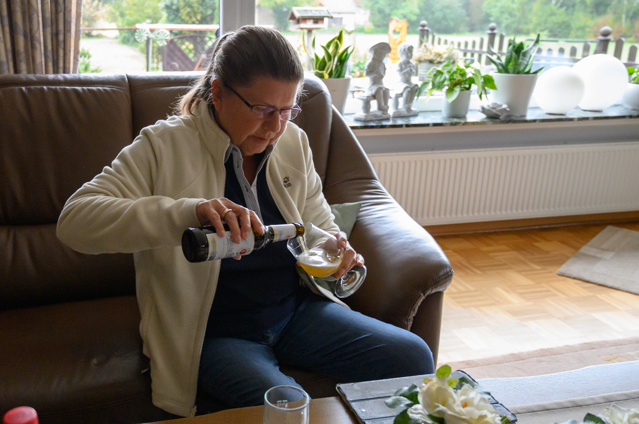 Jochen und Gisela haben uns ein opulentes Frühstück serviert. Ein besonderes Highlight das Hackmet. Das war ein superguter Start in den Tag, da störte auch nichte der verhangene Wolkenhimmel, aus dem es immer noch nieselte.