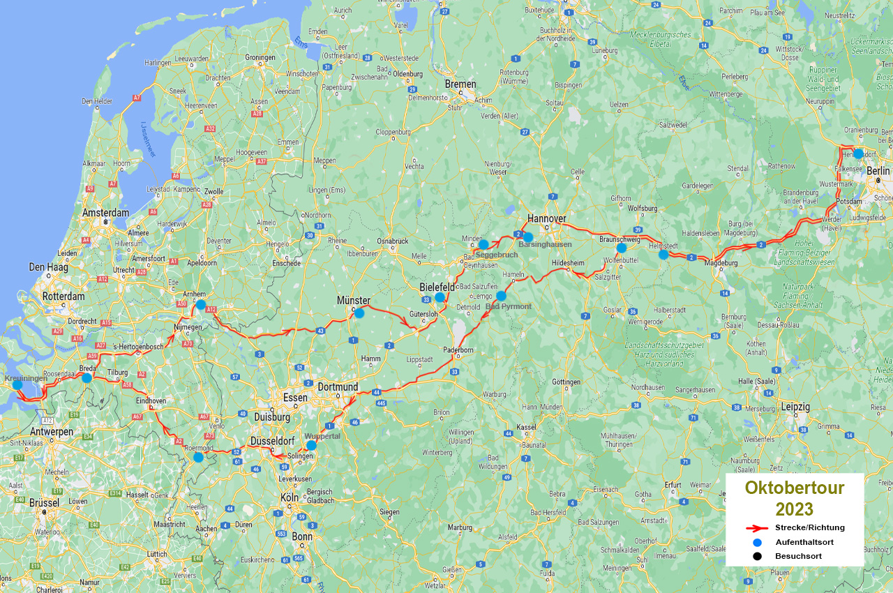 Start der Tour am Sonnabend, den 30.09.2023 und Ende am Dienstag, den 31.10.2023