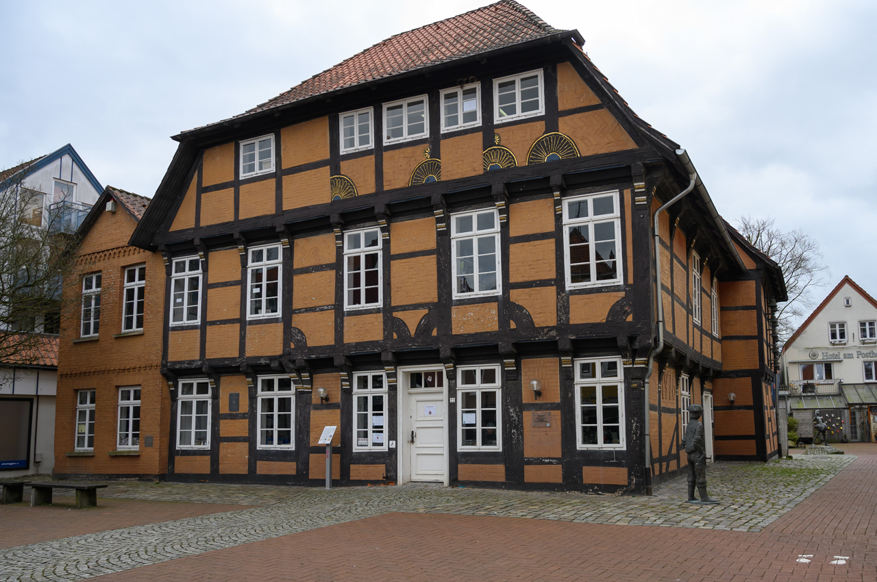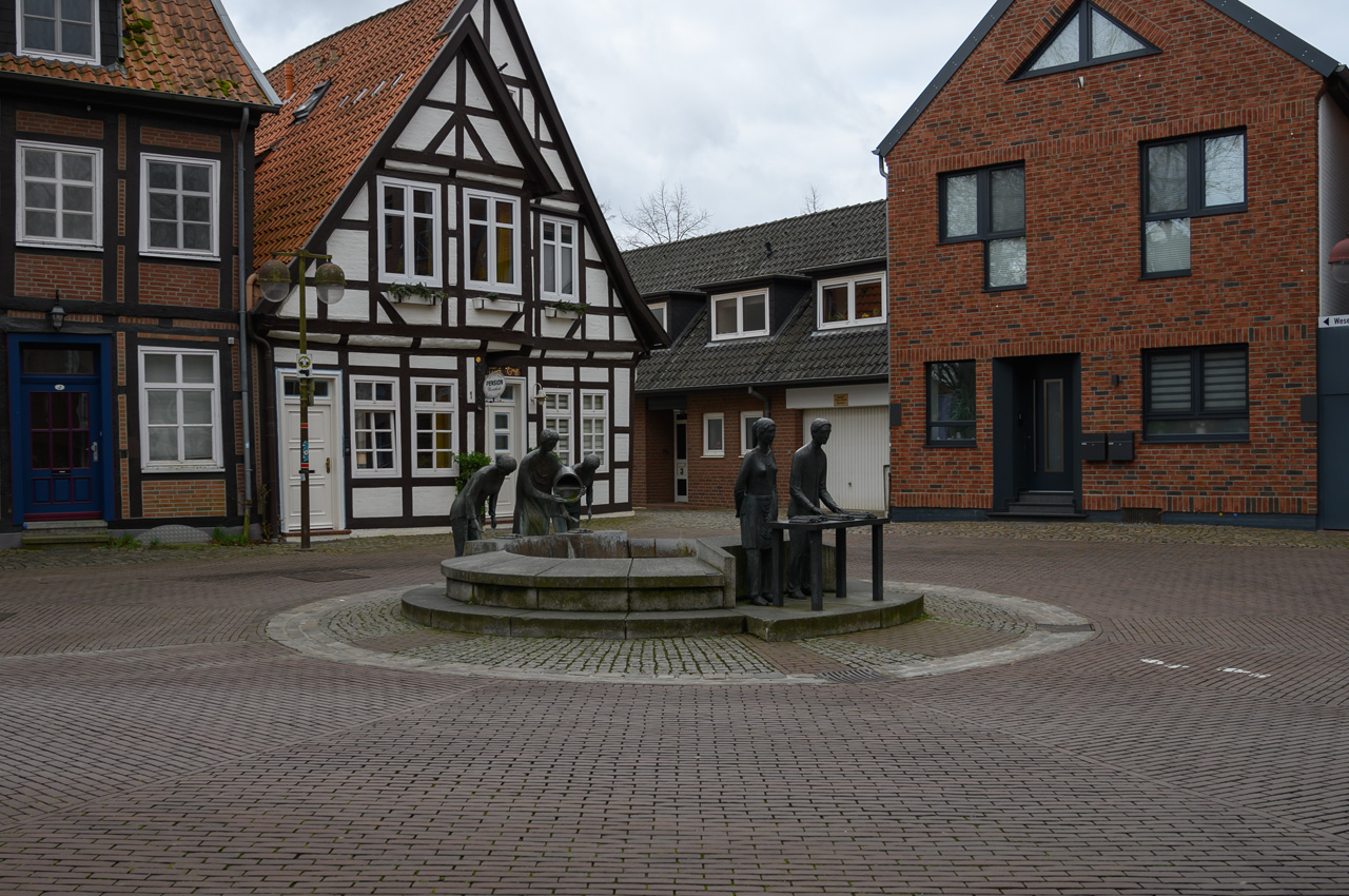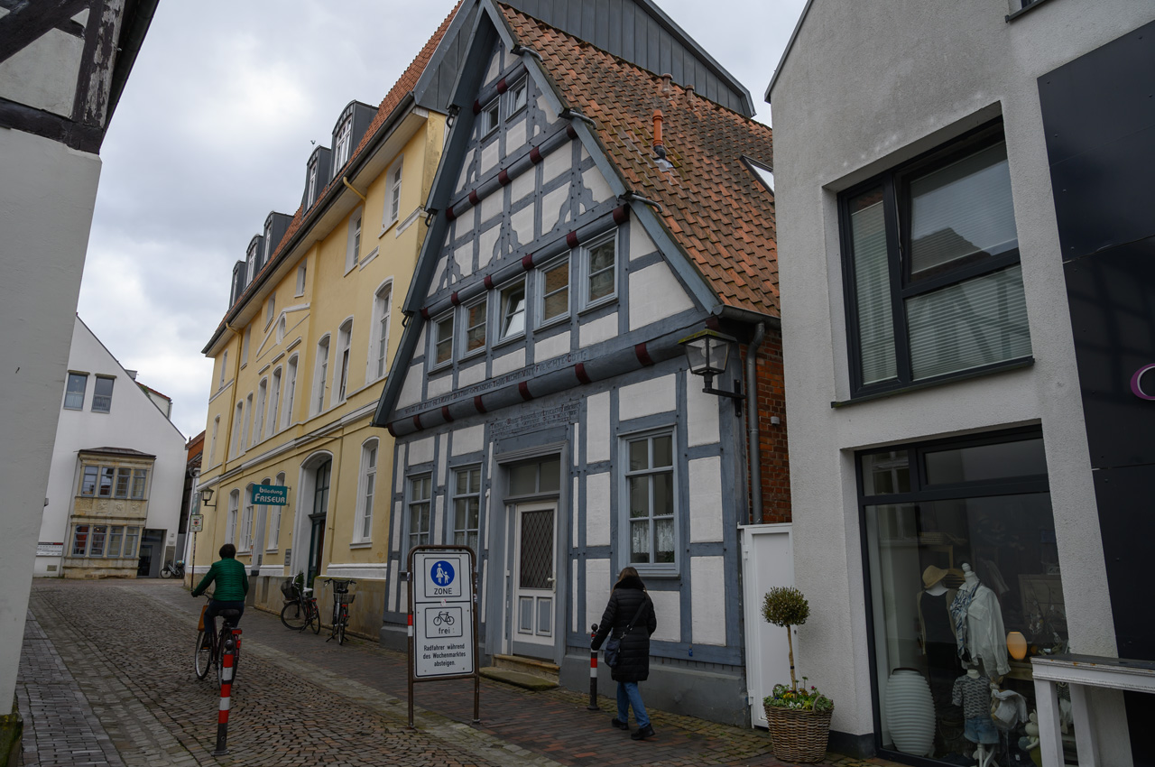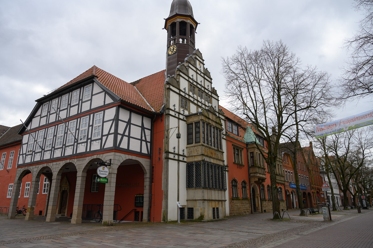 Gegen Mittag sind wir in die Altstadt von Nienburg gelaufen, dass ist vom Womo aus ganze 500 Meter. Die Altstadt von Nienburg ist sehr schön, es gibt hier noch viele historische Häuser in sehr gutem Zustand. Das Rathaus ist ein sehr schöner Anblick, was man von dem sogenannten Wiesenschem Haus nicht behaupten kann, leider keine gelungene Architektur. Die Utlucht und der Rest passen nicht zusammen. Die Kirche St. Martin war verschlossen, wir haben auch keine Öffnungszeiten gefunden. Die Fußgängerzone lebt hier noch richtig. In einem Geschäft für Tresore und Grills, haben wir ein neues Modell von Weber entdeckt. Ein Grill mit einem sehr flachem Gehäuse, fest in einem Wagen montiert, den man komplett zusammenklappen kann. Der ist dann noch ganze 37 cm hoch. Das war sehr verlockend, besonders mir hat der sehr gut gefallen, aber die Vernunft hat gesiegt und wir haben uns entschieden bei unserem alten Webergrill zu bleiben. Interessant war hier der Preisunterschied zwischen dem Geschäft wo wir den Grill entdeckt haben und dem OBI-Markt bei unserem Stellplatz. Das Geschäft in der Altstadt wollte 559,-€ haben und der OBI-Markt hat ihn für 399,-€ angeboten. Im Internet gab es sogar einen Anbieter im Versand, mit 221,-€. Da sollte man doch tatsächlich immer mal ins Internet schauen, bevor man irgendwo einfach drauflos kauft. Direkt in der Innenstadt gab es einen Mediamarkt, dort haben wir uns sowohl für zu Hause wie auch fürs Womo Ersatzzahnbürsten gekauft. Das Zeug ist ja schon fast eine Investition.