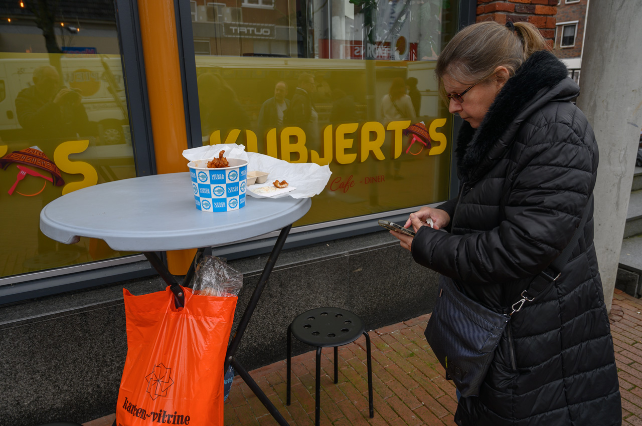 Nach dem Kaffee sind wir zu einem kleinen Stadtbummel aufgebrochen. In unmittelbarer Nähe zum Hafen gibt es einen Albert Heijn Discount, den haben wir uns mal angesehen, Susanne liebt aber ihren Jumbo und ich muss sagen, die Verkaufskultur ist im Jumbo auch besser. In der Altstadt tobte das Leben, dort war Wochenmarkt und Flohmarkt. Wir sind die ganze Fußgängerzone der Langestraat gelaufen. Hier gibt es sehr schöne historische Gebäude, genau so wie wir das lieben. Am Ende der Langestraat steht ein futuristirischer Bau, das Cultuurhuis De Klinker. Es beheimatet ein Theater, die Stadtbibliothek und ein Bioscoop. Ein Bioscoop ist ein Kino haben wir dann aus dem Internet gelernt. Direkt gegenüber dem De Klinker gibt es einen ALDI und einen Jumbo. In dem Jumbo wollen wir uns morgen mit unseren geliebten niederländischen Spezialitäten versorgen.
