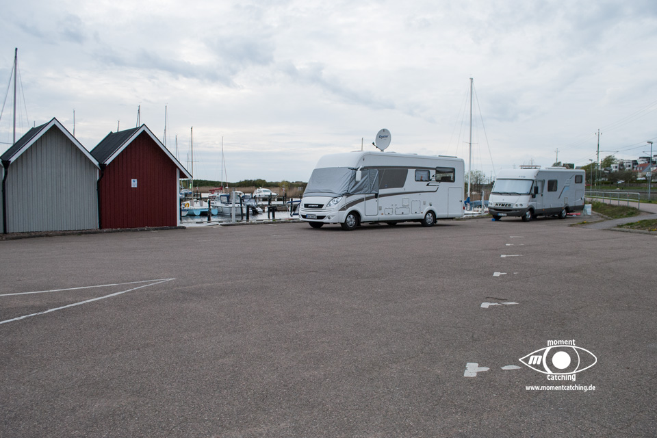- Die eigentlichen Flächen für Womo´s sind im Winter (der Winter geht in Schweden bis mindestens Mitte Mai) durch Boote zugestellt. Als Ausgleich werden Plätze auf dem Parkplatz am Hafenkontor angeboten. Hier kann man dann auch den Strom von den Stegen beziehen.