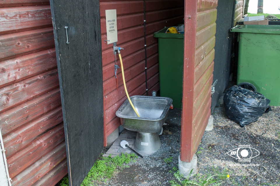 - In einem Sanitärgebäude ist eine Küchenstube, Duschen und Toiletten. Außen am Sanitärgebäude in einem kleinen Anbau ist die Fäkalienentleerung, davor gibt es Trinkwasser.