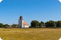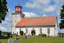 Bereits im 11. Jahrhundert kann es in Gårdby eine Holzkirche gegeben haben. Auf dem Friedhof befindet sich ein christlicher Runenstein, Gårdbystenen , mit Informationen, die darauf hindeuten. Im 13. Jahrhundert wurde die Holzkirche durch einen kleinen romanischen Steinbau mit Kühen und Apsis im Osten, einem Langhaus mit Eingang an der Südseite und einem Westturm vom Typ Wehrkirche ersetzt .