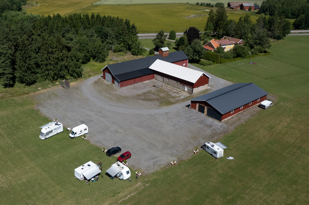 - Die Stellflächen befinden sich hinter den Wirtschaftsgebäuden eines ehemaligen Bauernhofes. Man steht auf Wiese oder Schotter. Die Stellflächen sind nicht markiert. Die Wiesenfläche ist extrem groß mit weiter Sicht in die Landschaft.