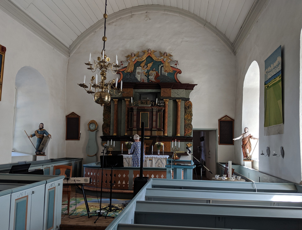 02.08.2019: Wir waren mit den Rädern aus Grönhögen hier. Die Kirche war offen. Sehr hübsche Innenausstattung.