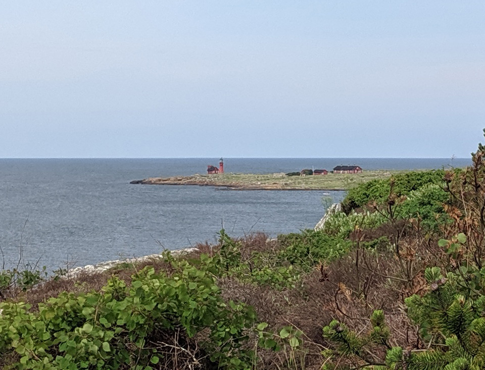 Die flache und felsige Insel ist nahezu baumlos und fast nur mit Gräsern, Heidekraut und niedrigem Buschwerk bewachsen. Die wenigen Bäume der Insel zeigen sich hauptsächlich als Allee mit künstlich angepflanzten Mehlbeerbäumen, die, begleitet von verwilderten Obstgärten, vom Anleger an der Ostseite bis zum höchsten Punkt der Insel verläuft.