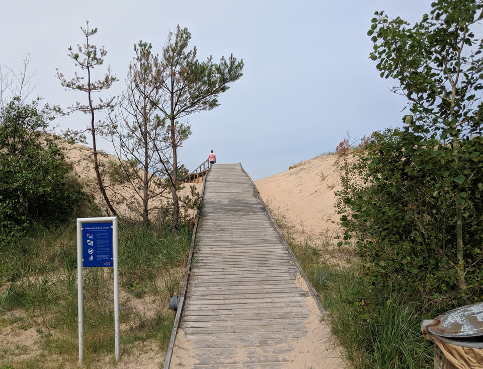 In regelmäßigen Abständen ist der Strand mit Papierkörben sowie behindertengerechten Toiletten ausgestattet. Während der Hochsaison von Mitte Juni bis Mitte August wachen Rettungsschwimmer über die Sicherheit der Badegäste.