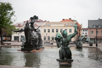 Milles Brunnen auf dem Marktplatz mit der Statue Europa mit dem Stier.