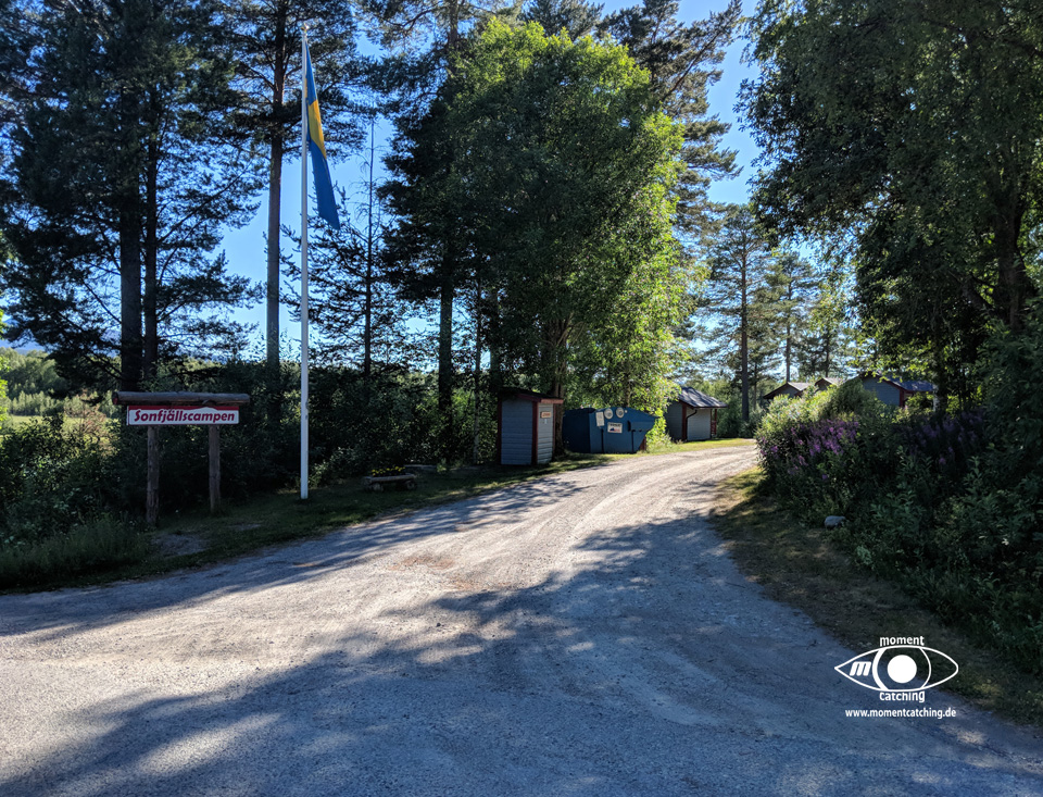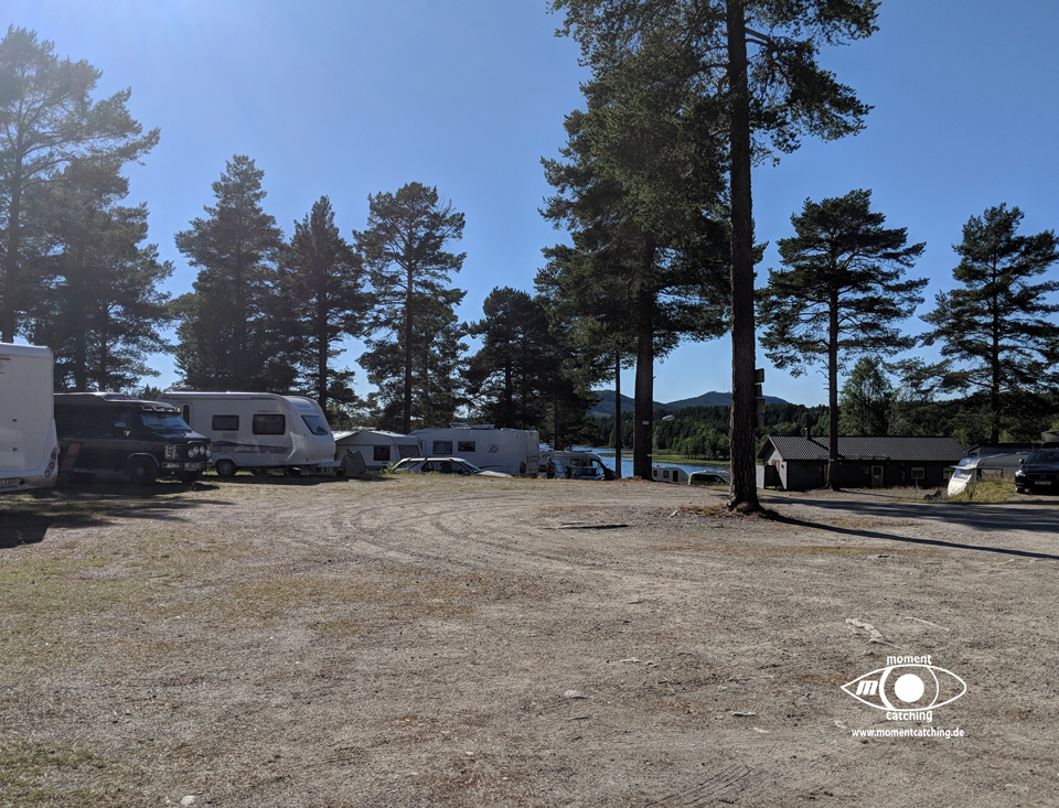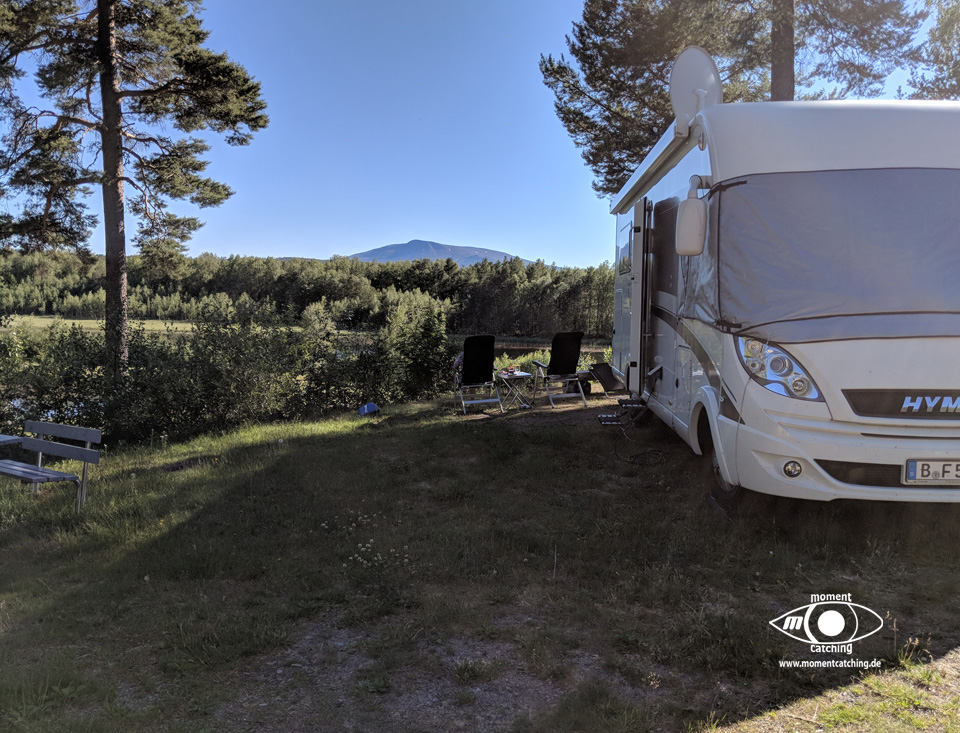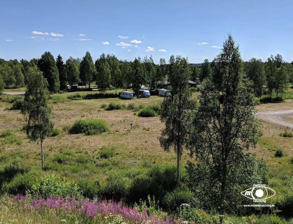 - der Campingplatz liegt am Ljusnan und besteht aus mehreren terrassenartigen Flächen, die zum Ufer hin abfallen. Die meisten Stellflächen haben in sich auch noch Gefälle, was aber problemlos ausgehlichen werden kann. Durch die Terrassen haben viele Stellflächen gute Sicht auf den Nebenarm des Ljusnan und im Hintergrund ist der Sonfjället, die Heimat der Bären von Schweden.