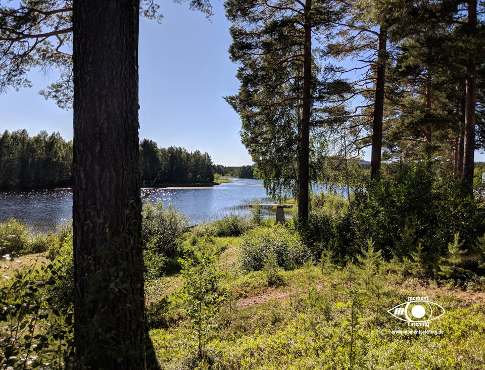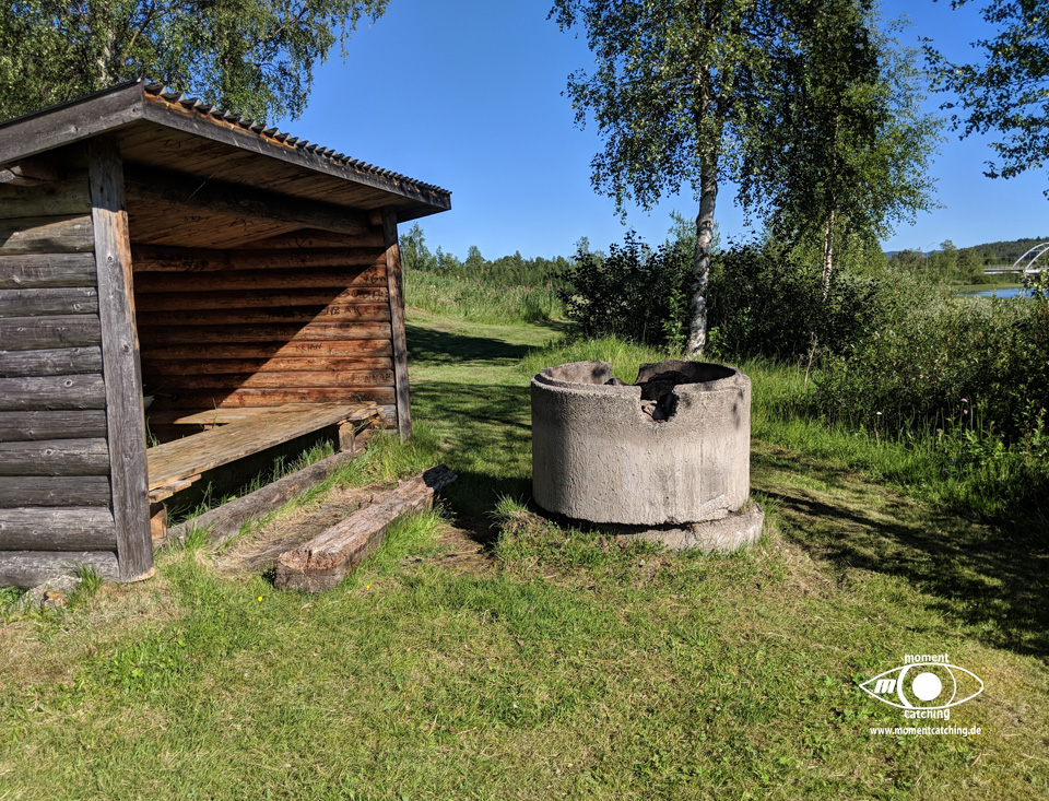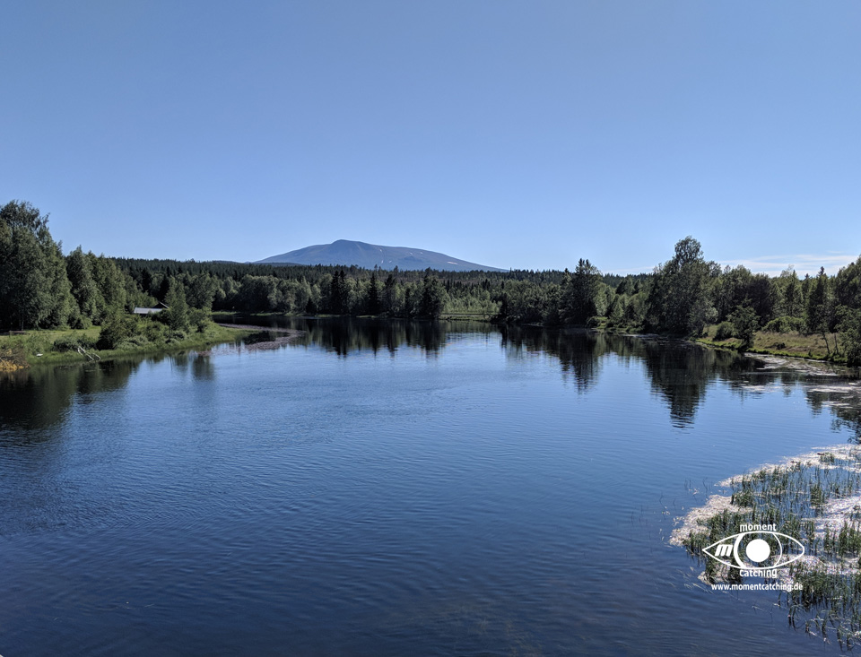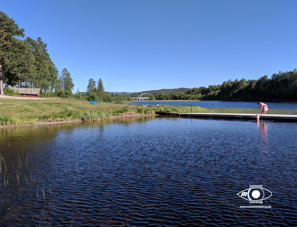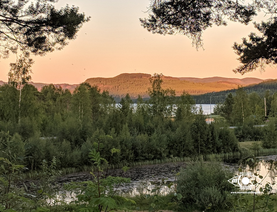 - der Campingplatz liegt am Ljusnan und besteht aus mehreren terrassenartigen Flächen, die zum Ufer hin abfallen. Die meisten Stellflächen haben in sich auch noch Gefälle, was aber problemlos ausgehlichen werden kann. Durch die Terrassen haben viele Stellflächen gute Sicht auf den Nebenarm des Ljusnan und im Hintergrund ist der Sonfjället, die Heimat der Bären von Schweden.