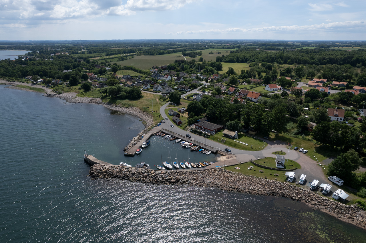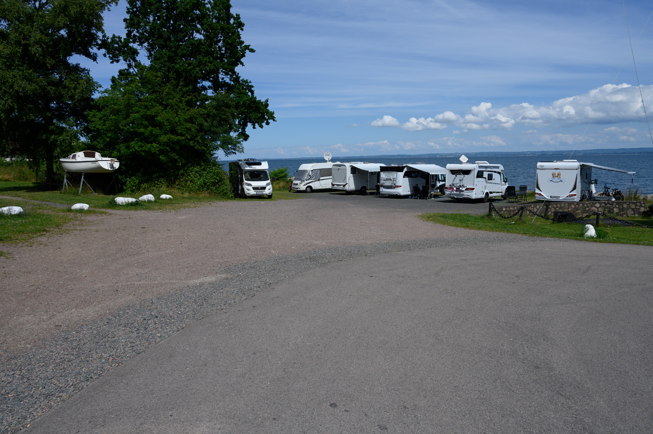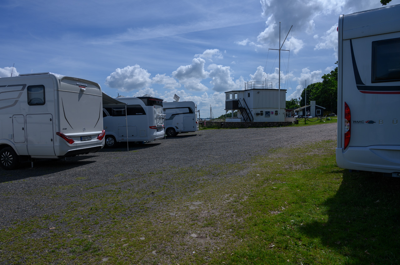 - Die Stellflächen befinden sich neben einem Hafen auf Wiesenschotter. Die Stellflächen sind nicht markiert. Man steht direkt an der Uferböschung aus massiven Felssteinen ca. 5 Meter über Meeresspiegel.