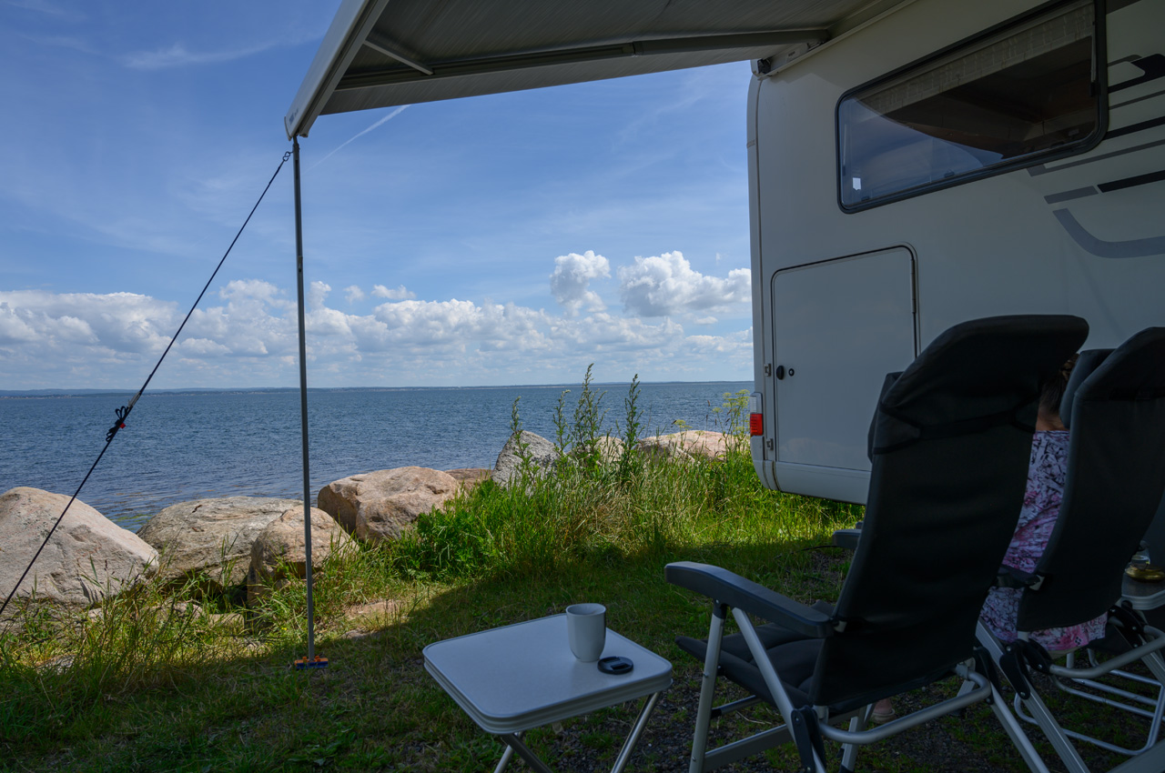 - vom 29.06. bis 03.07.2022: Wir hatten das Glück, den Platz zu bekommen. Dadurch konnten wir mit unserer Hecksitzgruppe zum Wasser stehen und unsere Sitzfläche war unverbaubar. Eine traumhafte Aussicht über die Bucht. Man sieht auf der anderen Seite Ängelholm.