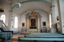 Der klassizistische Altaraufsatz mit strahlender Sonne wurde vermutlich 1822/23 hergestellt und kann von oder in Zusammenarbeit mit dem Admiralitätsbildhauer Johan Törnström geschaffen worden sein. Der Altaraufsatz wurde 1908/09 mit gemalter Scheinarchitektur versehen.