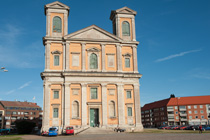 Die Kirche ist ein achteckiger Bau mit einer Kuppel. Das Vorbild war das Pantheon in Rom. Zum Marktplatz hin weist die Kirche einen Portikus mit vier Säulen auf.