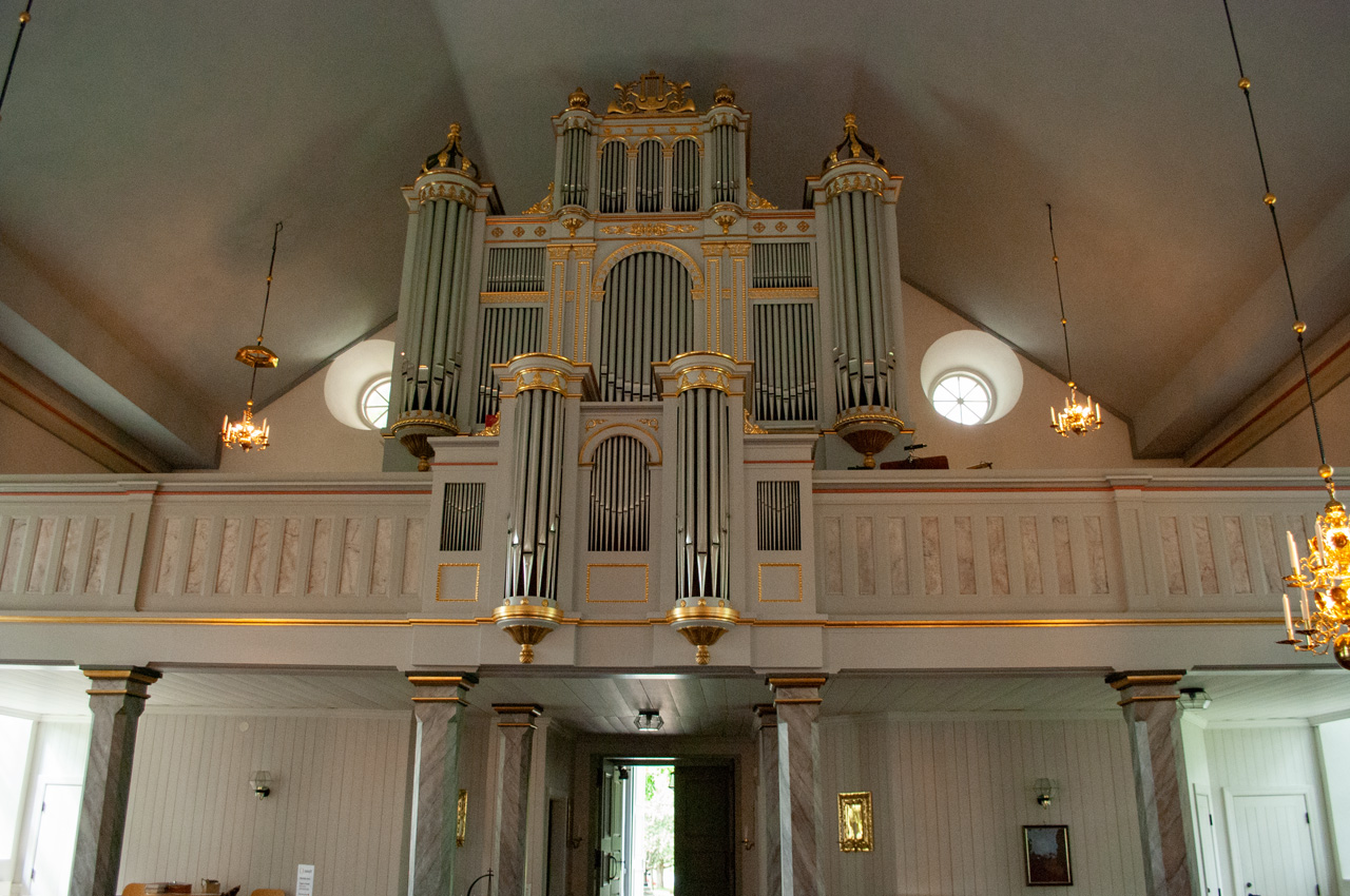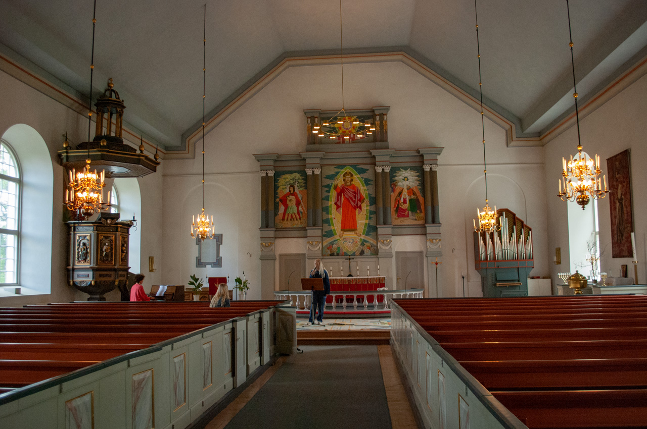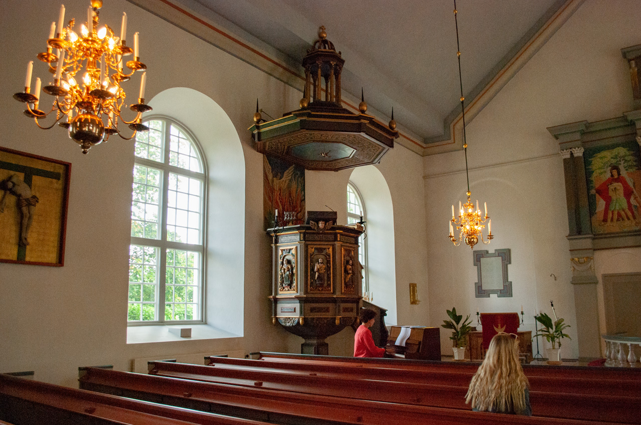 13.06.2017: Als wir eintrafen hat gerade ein junges Mädel zu Klavierbegleitung gesungen. Die Kirche ist relativ schlicht, hat aber eine große Orgel und eine barocke Kanzel.