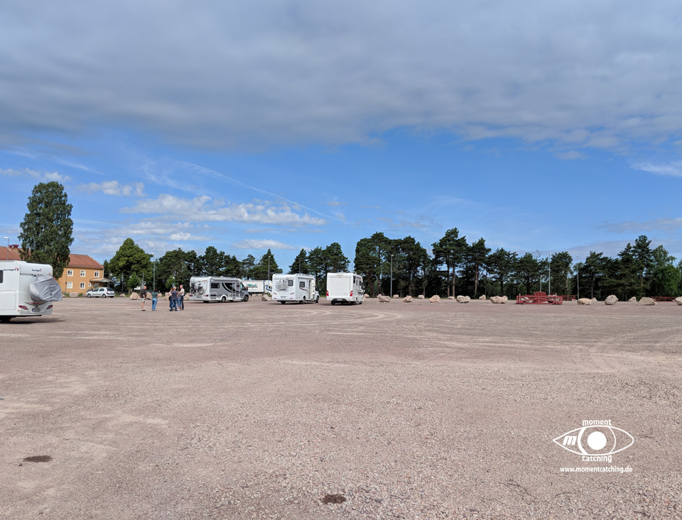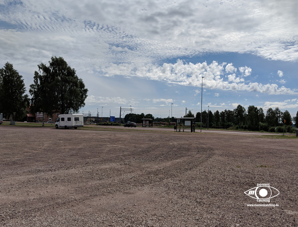 - Es handelt sich um eine große Schotterkiesfläche auf der auch zwischenzeitlich große Lkw`s parken. Bei Trockenheit eine sehr staubige Sache. Die Flächen für Womos sind nicht markiert.