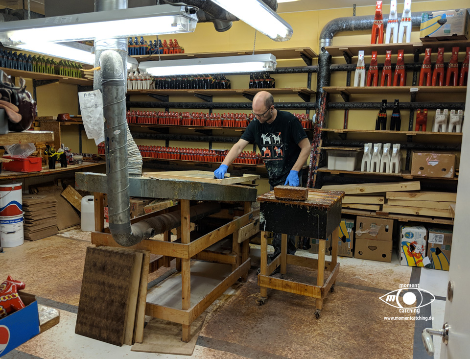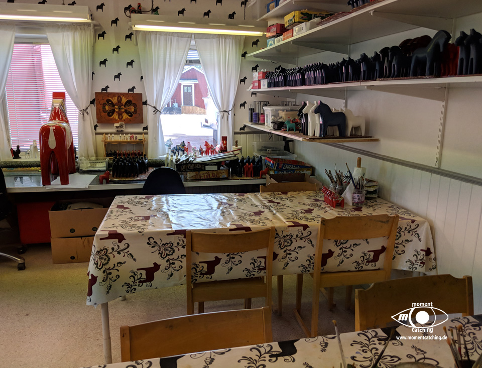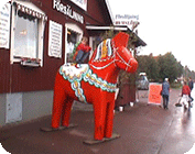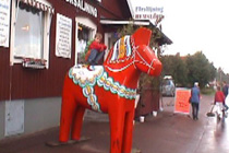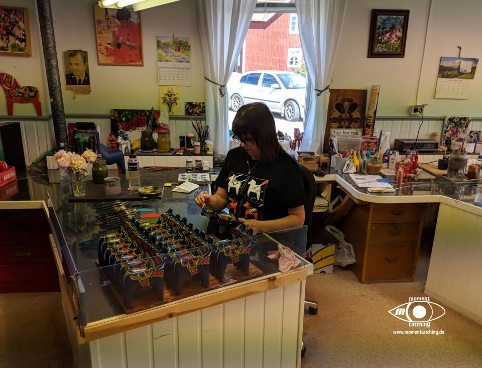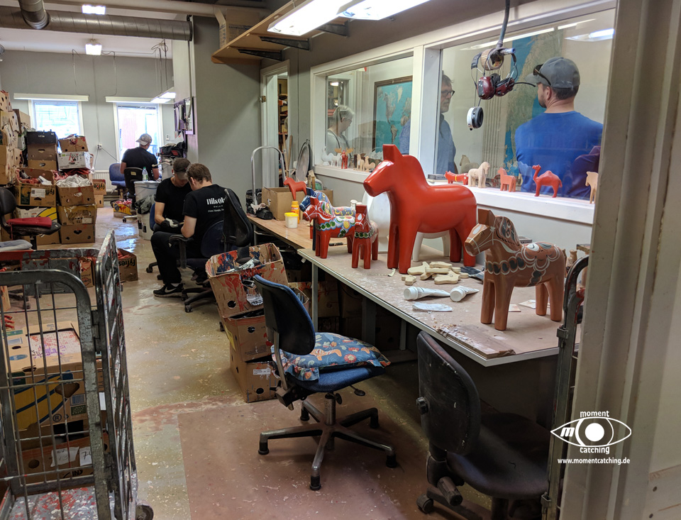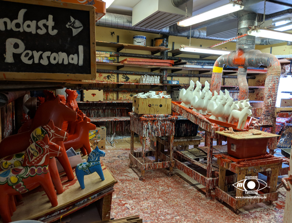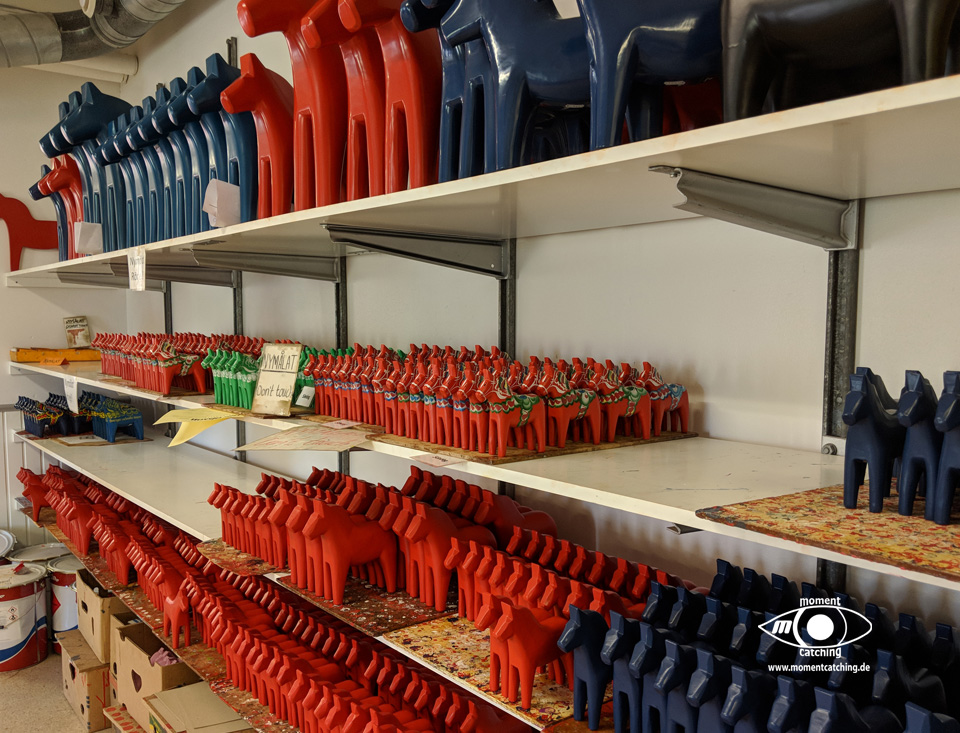Nusnäs ist ein kleiner Ort am Siljansee. Hier sind die traditionsreichen Fabriken der Dalapferdhersteller. Für Touristen ist das schwedische Nationaltier der Elch. Die Einheimischen bevorzugen das Pferd – eines aus Holz, hergestellt in Nusnäs. Bill Clinton hat einen, Elvis Presley hatte einen, Frank Sinatra und Yassir Arafat auch. Die Rede ist von einem Dalahäst, einem Pferd aus Dalarna. Nein, kein lebendiges Pferd. Es ist aus Holz, rot oder blau bemalt und reich verziert. Mehr noch: Dalapferde sind eines der schwedischen Nationalsymbole, und deswegen erhält Lasse Olsson auch des öfteren Bestellungen der Regierung – die Holztierchen sind das ideale Geschenk für Staatsgäste. Lasse Olsson gehört die „Dalapferdefabrik“ in Nusnäs in der Provinz Dalarna. Er ist der Sohn von Jannes Olsson, dem Erfinder der Holzpferde. 1928 hat dieser zusammen mit seinem Bruder Nils sein erstes Holzpferd geschnitzt. Gerade erst 15 und 13 Jahre alt waren die beiden damals, und doch schon die ersten professionellen schwedischen Holzpferdehersteller. „Anderes gab es damals auf dem Land auch nicht zu tun“, stellt Lasse Olsson trocken fest. Auch heute ist die Herstellung eines Dalahästs noch Handwerk, allerdings wird ein Pferd nicht mehr nur von einer Person hergestellt, sondern es muss eine ganze Reihe von Arbeitsschritten durchlaufen, bevor es fertig ist. Zuerst werden die Umrisse der Pferdefiguren auf Holzblöcke aufgestempelt, dann mit der Stichsäge ausgesägt. Erst wenn die Grobform festgelegt ist, kommt das Schnitzermesser zum Einsatz. Diese Feinarbeit erledigen „für uns ungefähr 50 Rentner in Heimarbeit“, sagt Olsson. Dalapferdschnitzer sind in der Region angesehene Leute, und in manchen Familien wird der Beruf von Generation zu Generation weitervererbt. Anders als sonst, übernehmen hier aber nicht die Jungen das Geschäft, sondern die Alten. Erst wer aus dem Berufsleben ausgeschieden ist, wird Pferdeschnitzer. Homepage mit Öffnungszeiten und Eintrittsinformationen. |