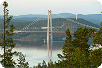 Auf einem Berg südlich von Ramvik gibt es eine abgeschaltete Sendeanlagen mit einem hohen Sendemast und verfallenen Gebäuderesten. Von hier oben hat man eine gute Aussicht auf den Angermanälven und die moderne, gigantische Högakustenbron. Die 1997 eröffnete Brücke ist eine Straßenbrücke für die Europastraße E4 und das zweithöchste Bauwerk Schwedens. Die maximale Stützweite der Brücke beträgt 1.210 m und ist damit fast ebenso lang wie die der Golden Gate Bridge (1.280 m). Ihre lichte Höhe beläuft sich auf 40 m, die Gesamthöhe auf 186 m bei einer Gesamtlänge von 1.867 m. Die Brücke ist 17,8 m breit. Homepage mit Öffnungszeiten und Eintrittsinformationen. |