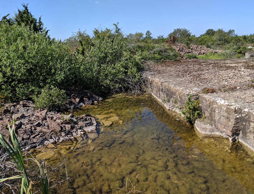 Der kleine Fischereihafen von Sandvik bietet auch Gästen Liegeplätze an. Sandvik ist das Zentrum des Steinabbruches auf Öland. Noch heute gibt es nördlich von Sandvik einen aktiven Steinbruch. Das Wahrzeichen von Sandvik ist die schon weit sichtbare Holländermühle, in der sich heute eine Gaststätte befindet. Die Mühle ist wohl die größte Mühle in Nordeuropa. Südlich von Sandvik erstreckt sich eine bizarre Landschaft, die durch den Abbau des dortigen Kalkgesteins stark geprägt ist. Die Strände bestehen aus dem Abfallgeröll und sind teilweise übersät mit Steintürmchen, die vor dem Unwesen der Trolle schützen sollen. Die beiden Moorflächen Knisa Mosse und Lofta Mosse können Naturliebhaber schnell ins Schwärmen kommen lassen. Die vielen kleinen Tümpel, überwiegend mit Steinboden, bieten vielen Tierarten Lebensraum. Wer mit offenen Augen durch die Landschaft geht, findet immer noch in den Steintrümmern versteinerte Tiere aus längst vergangenen Zeiten. Von alten Zeiten zeugen auch die vielen Gräber und Grabanlagen im Umfeld von Knisa und Lofta. Wir waren jedenfalls von dieser Gegend sehr begeistert.