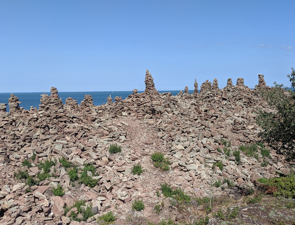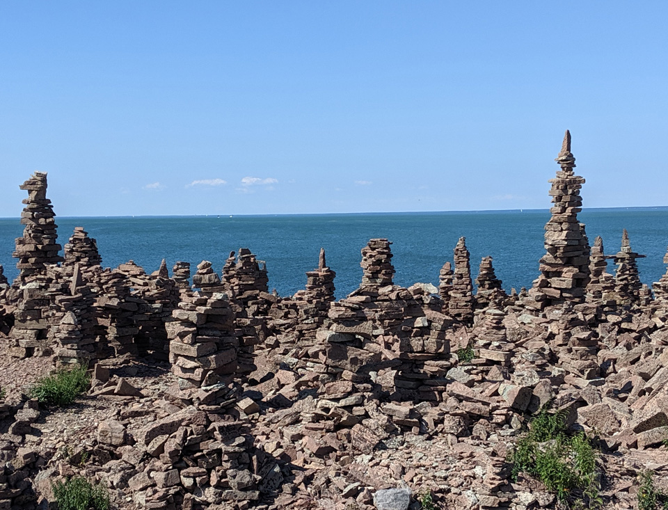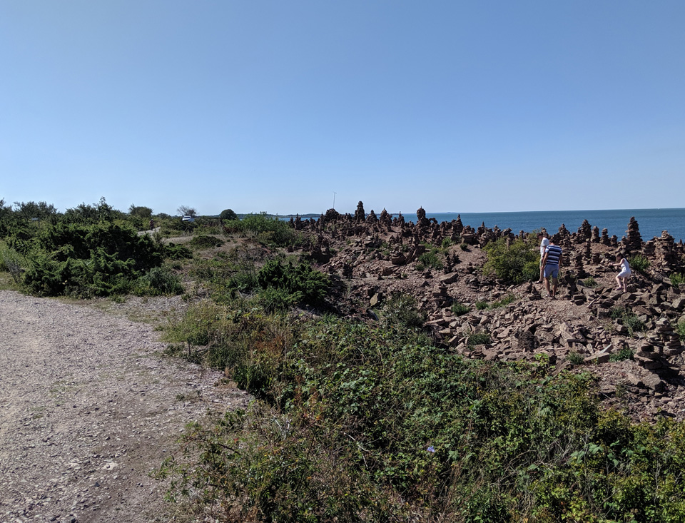 Die kleine Häuseransammlung Brudesta liegt etwa 14 km südlich von Sandvik an der Sundküste von Öland. Ein großer Teil dieses Gebietes entlang der Küste waren mal Steinbrüche. Hier wurde der berühmte rote Sandstein abgebaut, der in alle Welt verschifft wurde und noch heute viele historische Monumentalbauten ziert. Dazwischen liegt das Naturschutzgebiet Lofta Mosse (Moor), ein Gebiet mit einer besonderen Flora und Fauna. In dieses Gebiet darf man nur zu Fuß und man muss auf den vorgeschriebenen Wegen bleiben. Fast auf der gesamten Strecke liegt das Gelände ca. 20-30 Meter über dem Wasserspiegel. Die Steinbrechbetriebe haben hier den Abraum aus ihren Gruben abgeladen, was der Küste eine neue Form gegeben hat. An einer Stelle haben irgendwelche Leute Spaß daran gefunden Steintürme zu errichten, die sogenannten Trolltürme. Diese Steintürme kennt man schon aus der Wikingerzeit, obwohl ihre Bedeutung auch heute noch nicht eindeutig geklärt ist. Auf jeden Fall kann man hier staunen über den Einfallsreichtum mancher Leute.