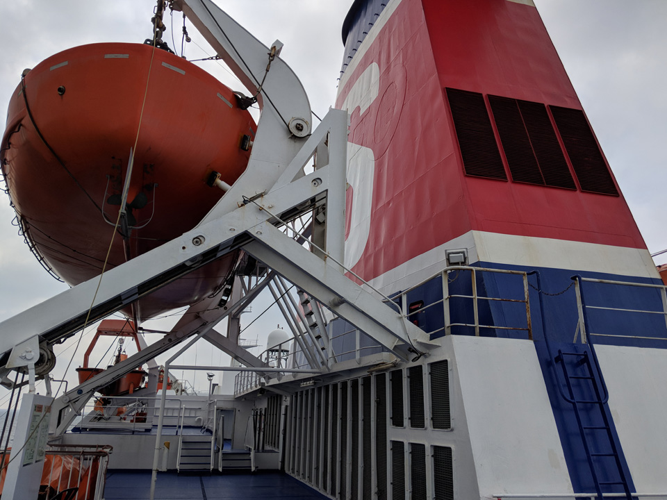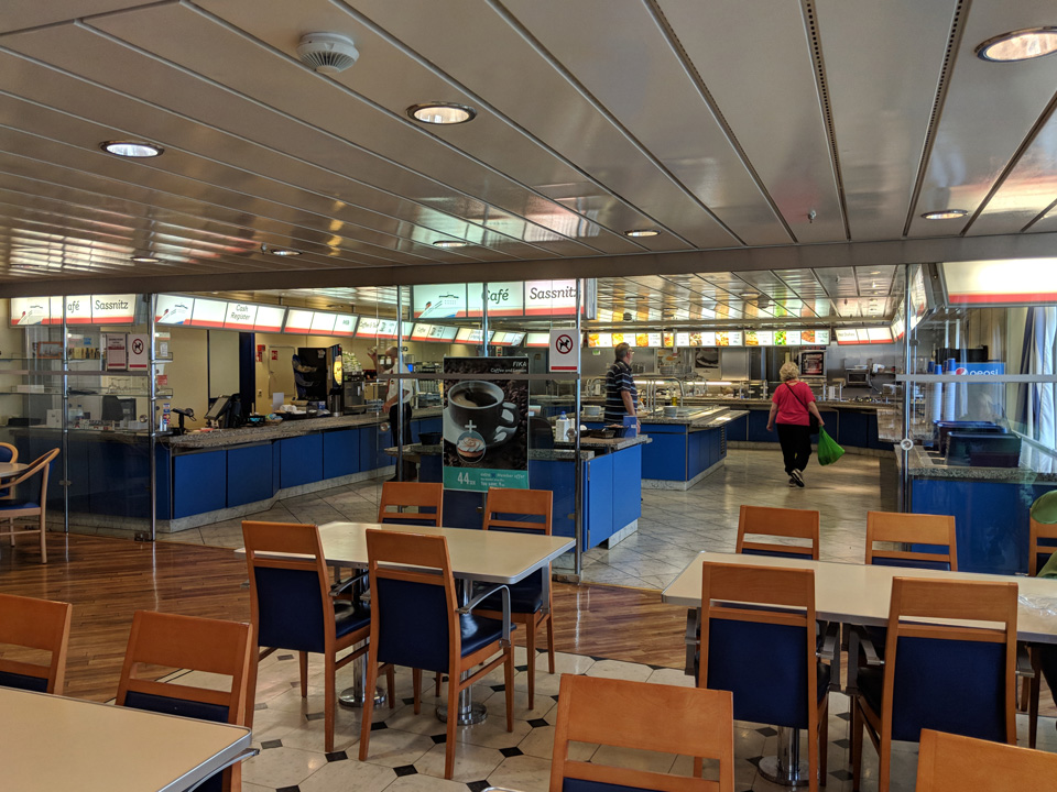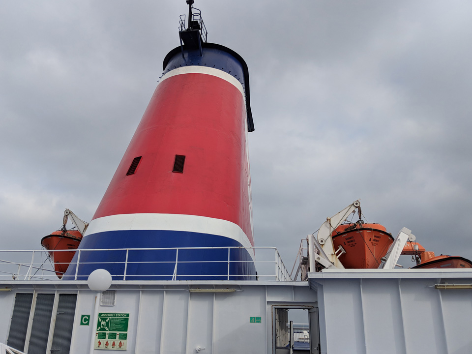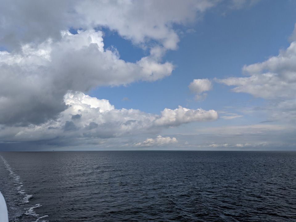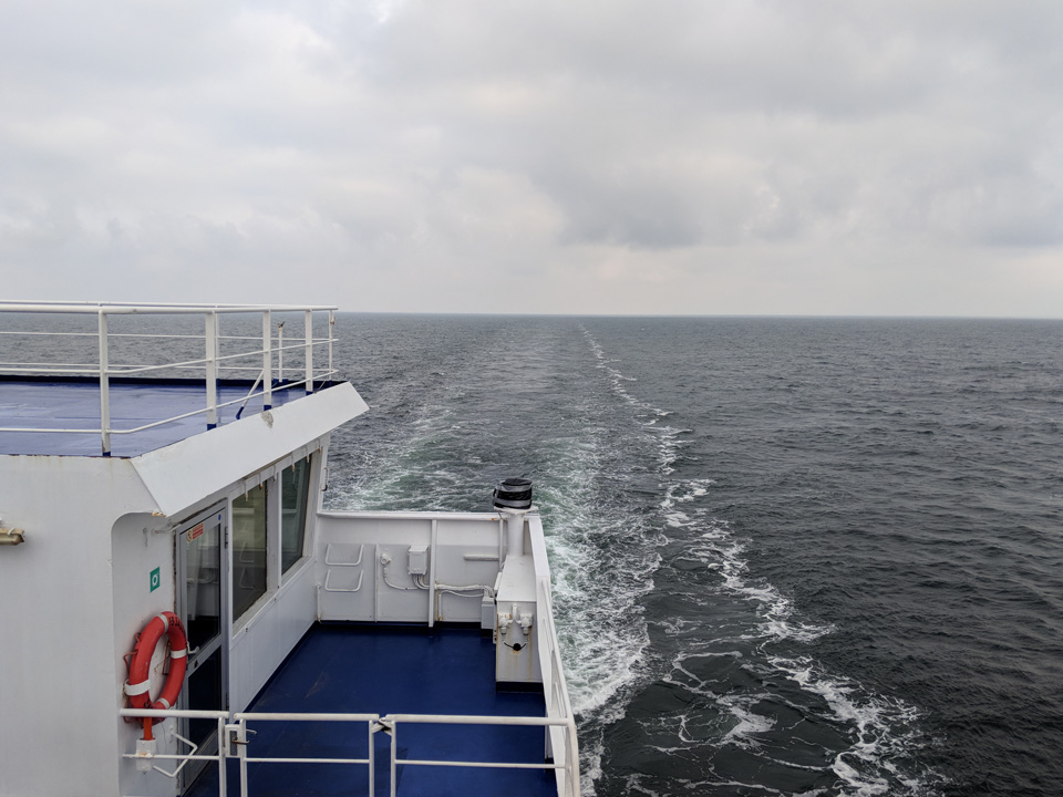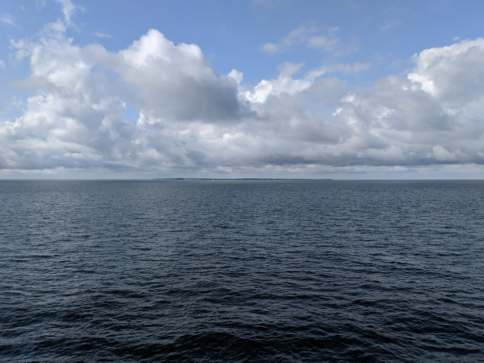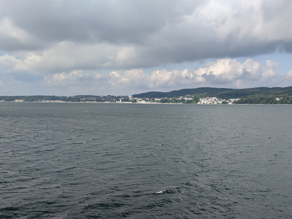 Für die Rückfahrt haben wir die Fähre 07:45 Uhr von Trelleborg gewählt und bei dieser Tour auch mit Frühstück. Das Wetter war deutlich besser als bei der Hinfahrt. Das Frühstück tat uns gut, wobei sich unsere Begeisterung über das Buffet in Grenzen hielt. Aber der Preis, wenn man das Frühstück vorbucht, war angemessen. Wir waren bei dieser Fahrt viel draußen. Am beeindruckensten war die Strecke entlang der Kreideküste von Rügen. Das Wetter spielte auch mit und für kurze Zeit strahlte auch die Sonne die Felsen an, was bei dem Weiß besonders schön aussieht.