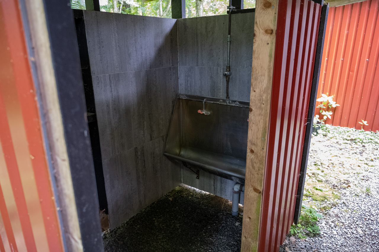 - Die Fäkalienentsorgung erfolgt über ein Becken in einer Raumnische im unteren Sanitärgebäude.