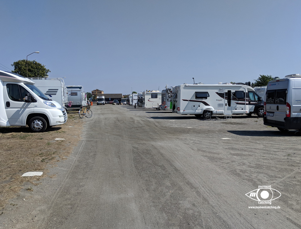 - Die Stellflächen sind streng reglementiert. Das Ausfahren von Markisen ist verboten, genauso wie das Grillen zwischen den Fahrzeugen. Der Stellplatz ist nichts für empfindsame Gemüter. Die Eisenbahnstrecke ist stark frequentiert und wenn dort Pause ist dringt der Straßenlärm durch oder der Lärm des Badestrandes.