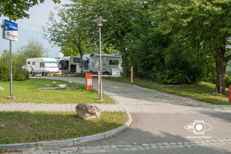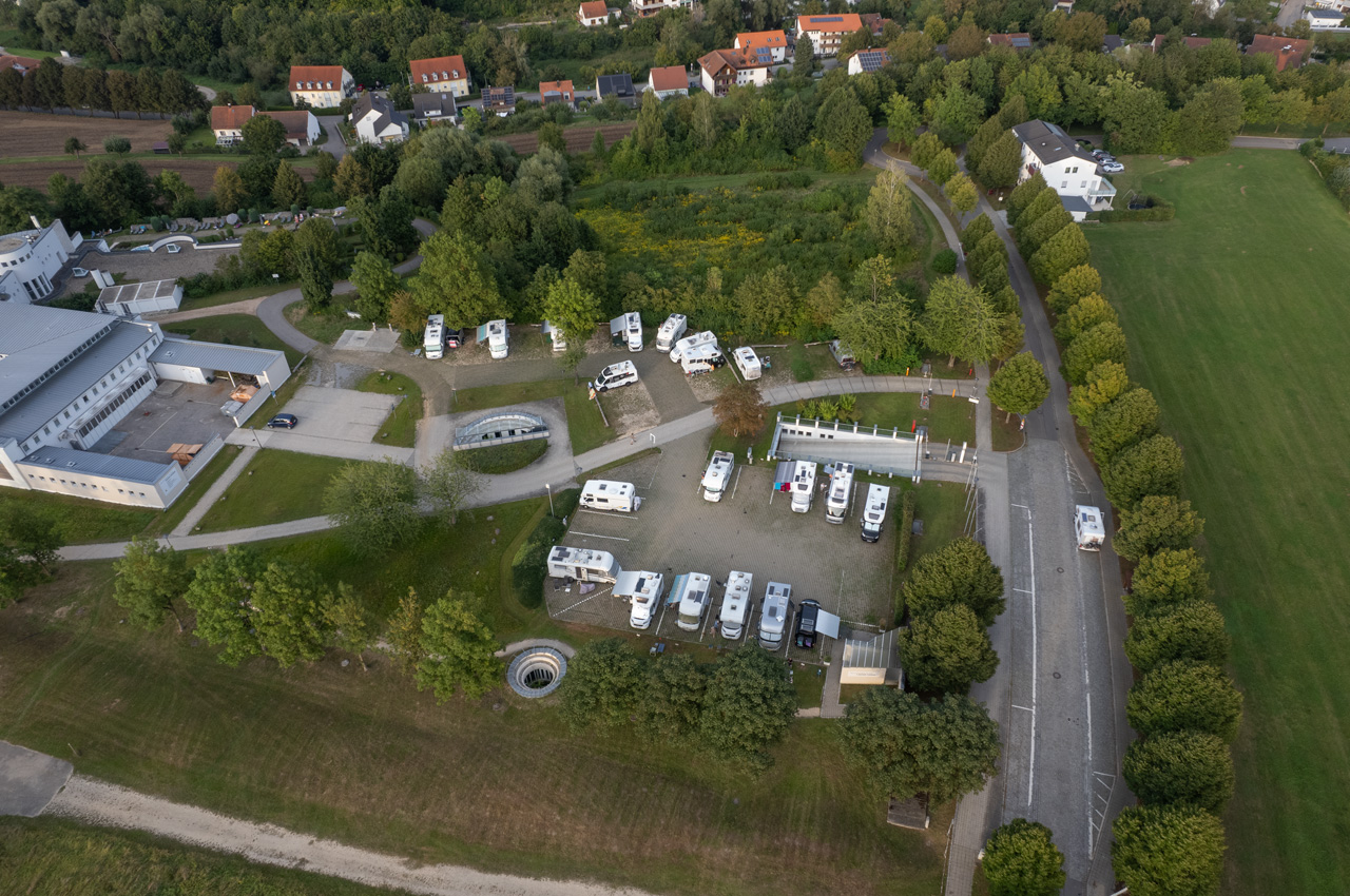 - Die Stellflächen sind nummeriert und die Begrenzung markiert. Man steht relativ eng. Auffahrend auf das Gelände befinden sich links die größeren Plätze und rechts die etwas kürzeren.
