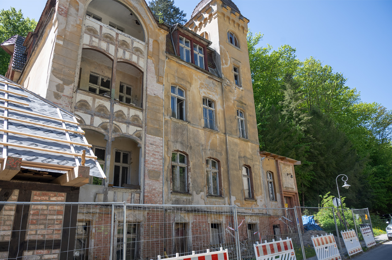 Der Sonnenschein lockte uns ins Freie. Sonnenschein und Temperatur liegen aber noch ziemlich weit auseinander. Ganze 9°C Außentemperatur verlangen noch nach einer wärmenden Jacke. Wir sind mit unseren Rädern in die Innenstadt von Bad Freienwalde gefahren und haben uns als erstes die Konzerthalle angesehen, das war ursprünglich die St. Georg Kirche. Der Fachwerkbau war in den sechziger Jahren so marode, dass das Gebäude abgerissen werden sollte. Beherzte Einwohner und die örtliche Pfarrerin haben sich aber für den Erhalt eingesetzt. In privater Initiative wurde das Gebäude durch freiwillige Helfer in 10 Jahren Arbeit wieder hergestellt. Heute werden dort Konzerte und Musikveranstaltungen durchgeführt. Das Innere ist auch sehr schlicht gehalten. Wir sind weiter zum Marktplatz gefahren. Die Stadtpfarrkirche St. Nikolai ist nicht zu besichtigen. Sie ist nur noch zu Gottesdiensten geöffnet. In unmittelbarer Nähe der Kirche steht das Rathausgebäude. In zwei weiteren historischen Gebäuden befindet sich in dem einen ein Museum und in dem anderen die Touristeninfo. Wir sind dann weiter gefahren in den ältesten Teil der Stadt, mit dem eigentlichen Ziel die künstliche Ruine zu besuchen. Der älteste Teil der Stadt besteht im Wesentlichen aus Einfamilienhäusern älterer Bauart. Der Weg zu der künstlichen Ruine war uns am Ende zu steil, zumal wir die Fahrräder nicht zurücklassen wollten. Wir sind nun zum Schloss gefahren und haben uns einen kleinen Bereich des Schlossparkes angesehen. Das Schloss ist in gutem Zustand und wird nur noch für Veranstaltungen genutzt und für Hochzeitsfeierlichkeiten. Vom Schloss ging es nun wieder hinab in das Gesundbrunnental. Hier liegen die meisten Kureinrichtungen und der eigentliche Kurpark, der Lenné-Park. Hier ist auch die Kurfürstenquelle, das Hauptstandbein des Bäderbetriebes in Bad Freienwalde. Der Kurpark ist klein, aber fein. Wir sind wieder zurück in die Innenstadt gefahren, vorbei an den schönen Villen aus mondäneren Zeiten. Von der Innenstadt haben wir einen Schlenker über das außerhalb liegende Einkaufszentrum gemacht. Hier haben wir unsere Lebensmittelvorräte aufgefrischt. Im Womo gab es dann den Nachmittagskaffee.