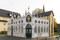 Die neugotische Trinkhalle wurde von 1905 bis 1908 errichtet und 1910 erweitert. Die beiden Fassaden des Saales sind reich gegliedert und durchfenstert. Der Saal ist mit einem Glasdach gedeckt. Über dem Eckeingang befindet sich das farbig gefasste Wappen des Papstes Pius X. Der lichte Innenraum ist durch Säulenstellungen quer geteilt. Der offene Dachstuhl ist mit kräftigen Zierhölzern geschmückt. Über dem Quellaustritt steht eine Figur des heiligen Liborius.