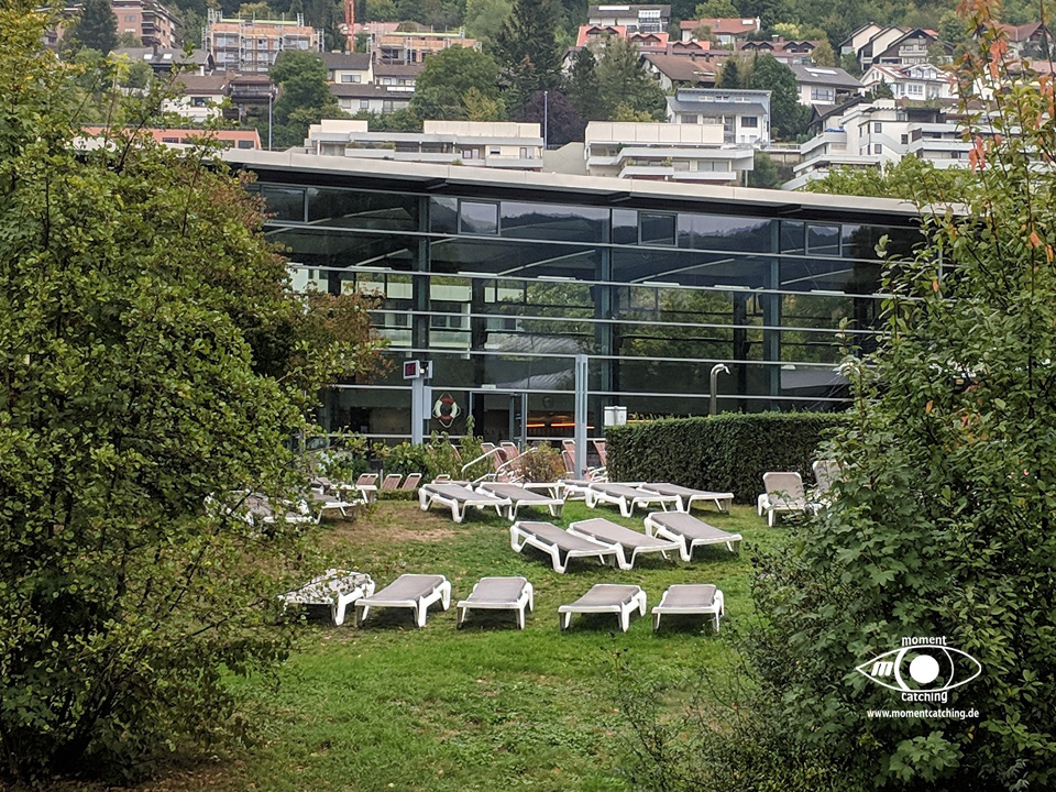 Der Kurpark verbindet im Kurzentrum die AlbThermen mit dem Haus des Gastes, zwei Kliniken, dem Hotel Graf Eberhard und dem Hotel Quellenhof. Er wird vom Flüsschen Erms durchzogen, über welches zwei Brücken führen. Mehrere Bronzestatuen – von Kurt E. Grabert, Dieter Läpple und Martin J. J. Kirstein – sind zu bewundern.