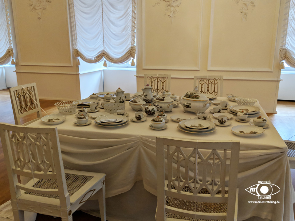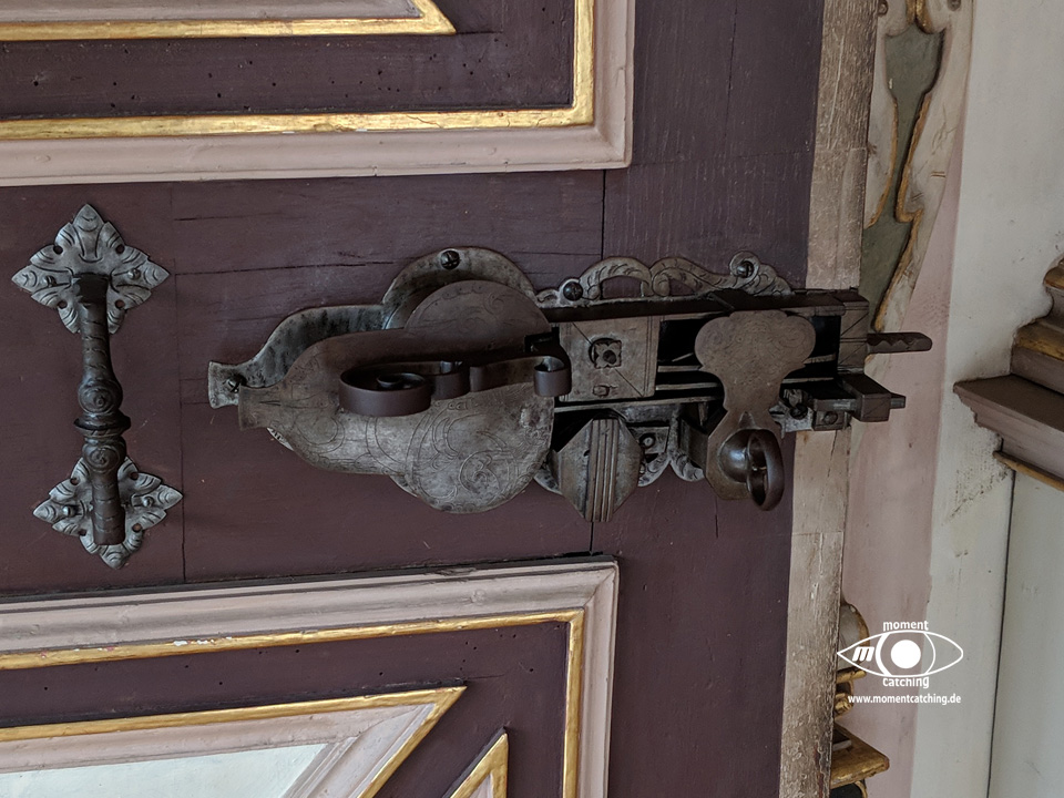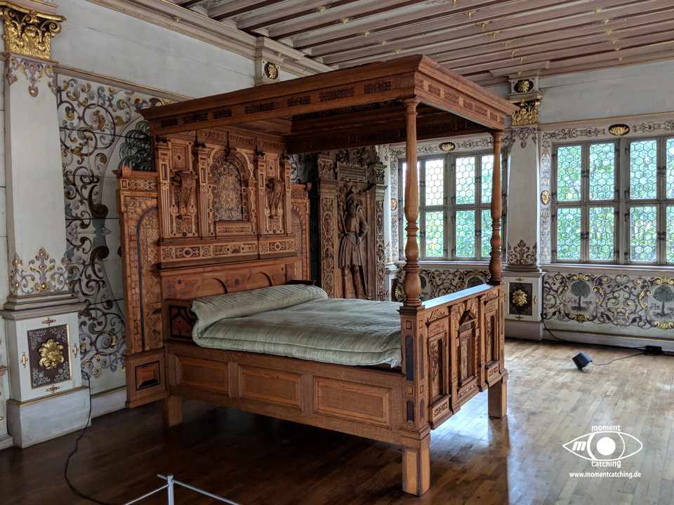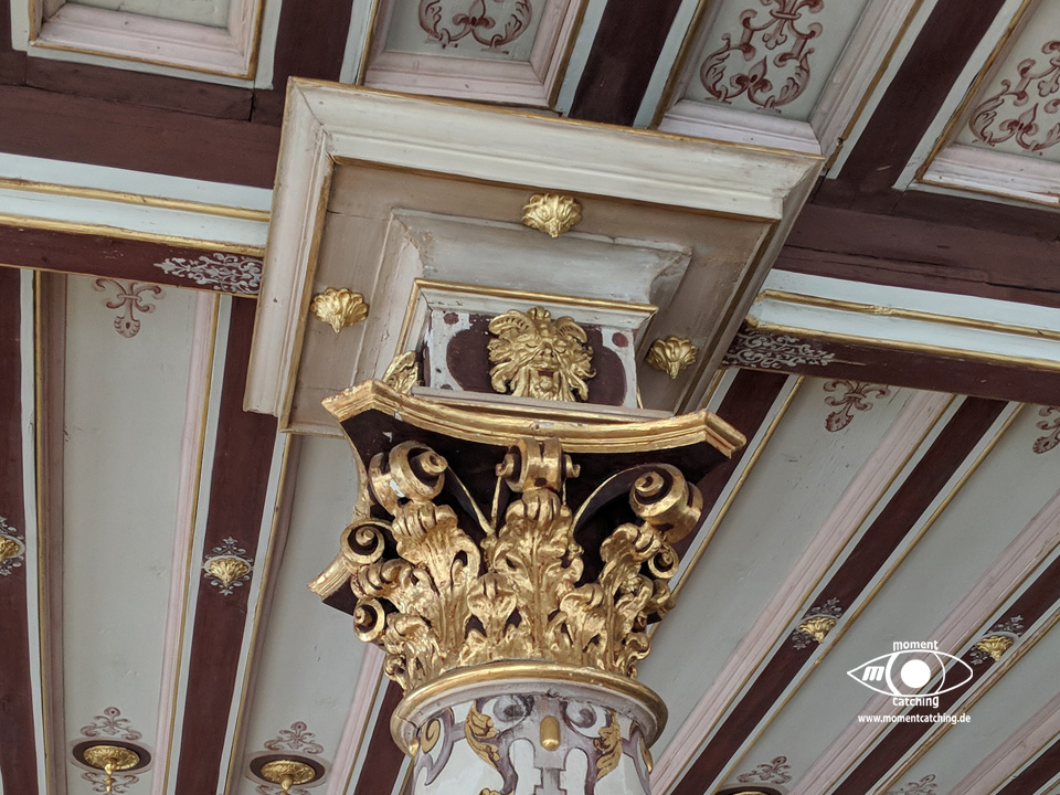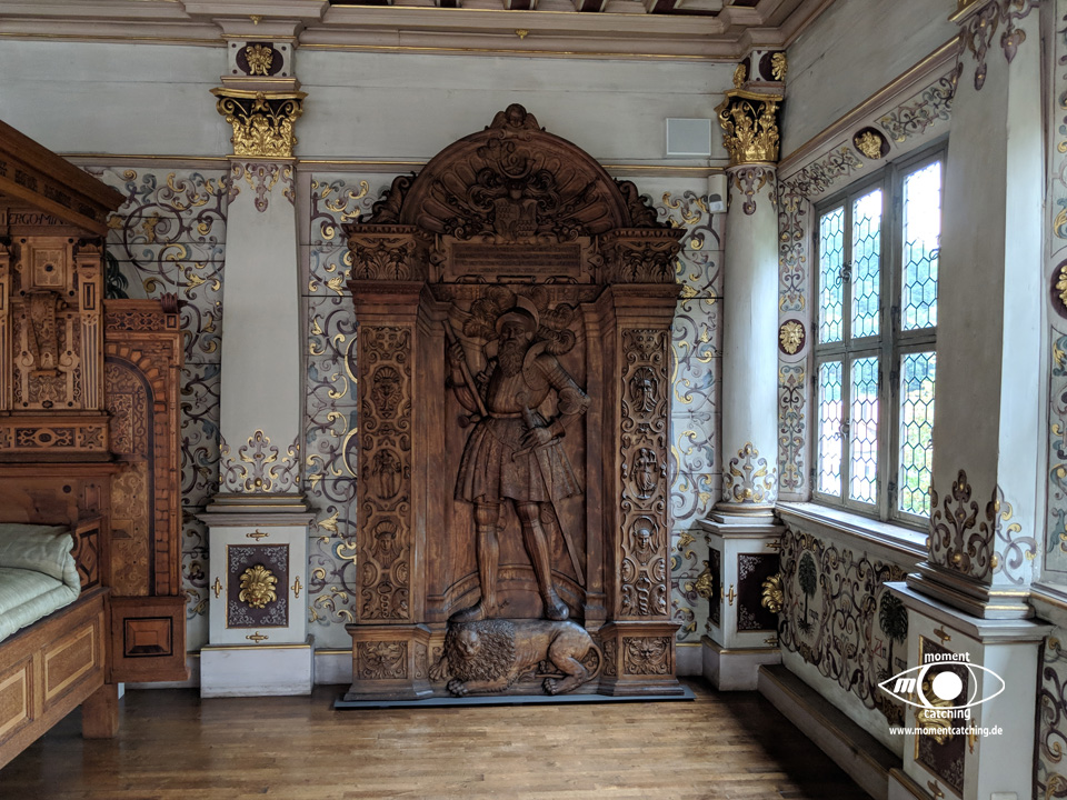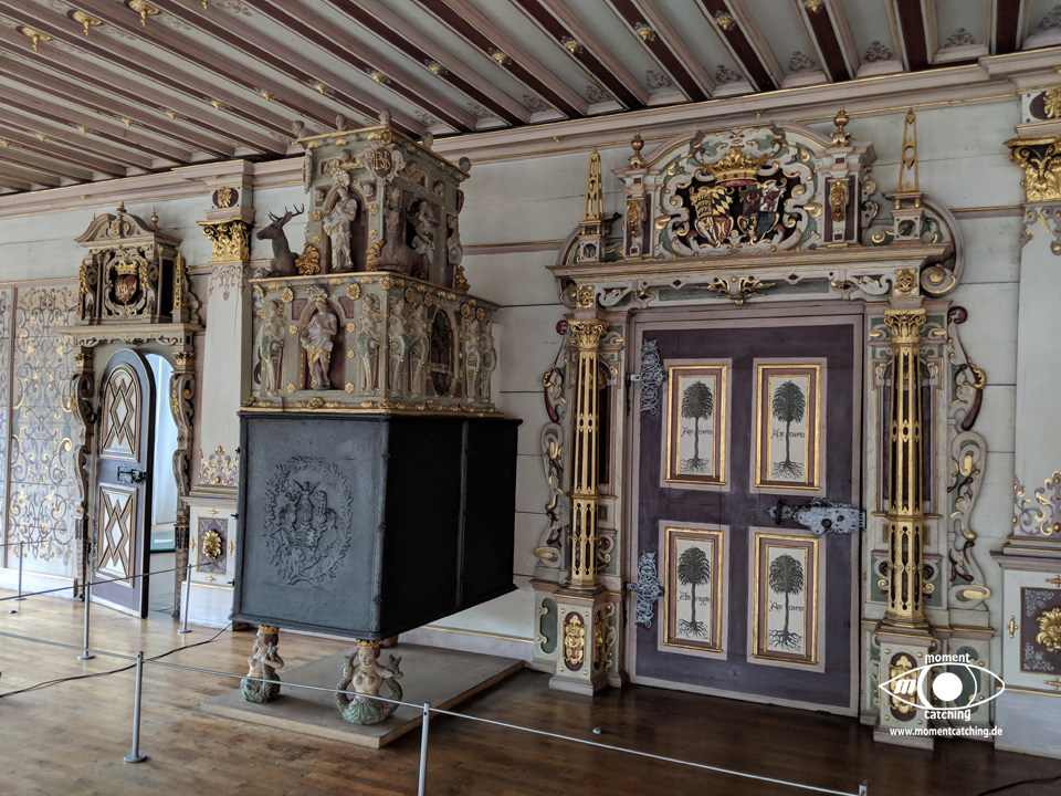 Im Schloss befindet sich der sogenannte Goldene Saal, ein bedeutender getäfelter Prunkraum der späten Renaissance in Deutschland. Die Stube ist flach gedeckt und auf drei Seiten durchlichtet. Sie wird von Säulen mit korinthischen Kapitellen unterteilt. Wände und Säulen sind reich vergoldet, daher hat der Raum seinen Namen.