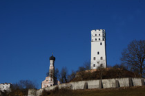 Das denkmalgeschützte Ensemble besteht aus der Hinteren (östlichen) Burg um den Bergfried und der Vorderen (westlichen) Burg mit dem Onoldsbacher Turm. Die Spornburg oberhalb der Schmutter am Rande des Lechtals stammt vermutlich aus dem 14. Jahrhundert und gehörte erst zentral zur Herrschaft der Rechberger, dann der Pappenheimer. Die Burg wurde 1508 zusammen mit der Herrschaft Biberbach durch Jakob Fugger erworben und 1525 neu als Schloss errichtet. Davon erhalten sind der Bergfried, die Maueranlage und der Onoldsbacher Turm.