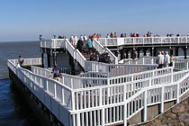 Später diente die Alte Liebe als Schiffsanleger und wurde regelmäßig erneuert. 1982 wurde das Bauwerk in eine reine Aussichtsplattform umgewandelt, zugleich wurden die maroden Holzpfähle des Unterbaus durch eine Konstruktion aus Stahlbeton ersetzt. Darüber befindet sich heute ein zweistöckiger Pfahlbau aus Holz, von dessen Galerie Besucher die Schifffahrt auf der Unterelbe beobachten können. Über eine Lautsprecheranlage werden die Besucher von April bis Oktober täglich zwischen 10 und 19 Uhr unter anderem über Größe und Herkunft der vorbeifahrenden Schiffe informiert. Seit 2011 ist der Schiffsansagedienst Cuxhaven e. V. für diese Ansagen verantwortlich.