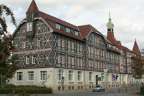 Das Neue Rathaus wurde 1868 als preußische Kaserne errichtet, fand ab 1907 eine neue Nutzung als das Versandhaus des August Stukenbrok und dient seit 1996 als Verwaltungszentrum der Stadt Einbeck.