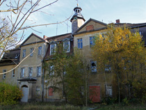 - Die V+E befindet sich an der Zufahrt zu den Stellflächen. Der Bodeneinlass für Grauwasser ist mit einer Blechklappe abgedeckt.
