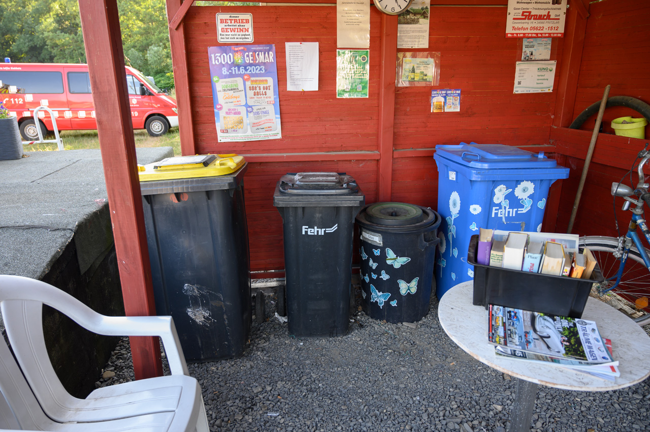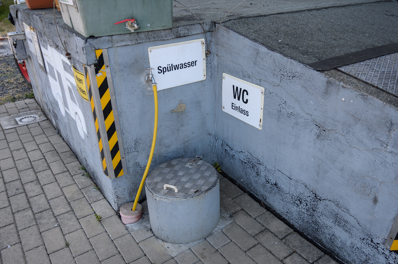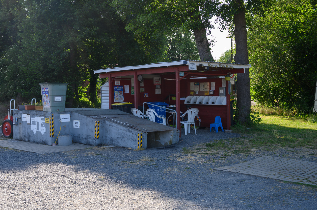 Anz. Stellpl.: 18 Boden: Schotterrasen 🔛 12 Meter + 🔌 ja CEE 6A; 🚰 ja Kleinmengen: ja 🚽 ja Becken mit Deckel 📥 ja Bodeneinlass/Gully 🚿 nein; 🚻 nein 📶 nein Max. Aufenthaltsdauer: Ohne Begrenzung 📆 ganzjährig Gasflaschentausch: nein Brötchenbestellung: nein Waschm./Trockner: nein Müllentsorgung: ja Mülltrennung: ja |