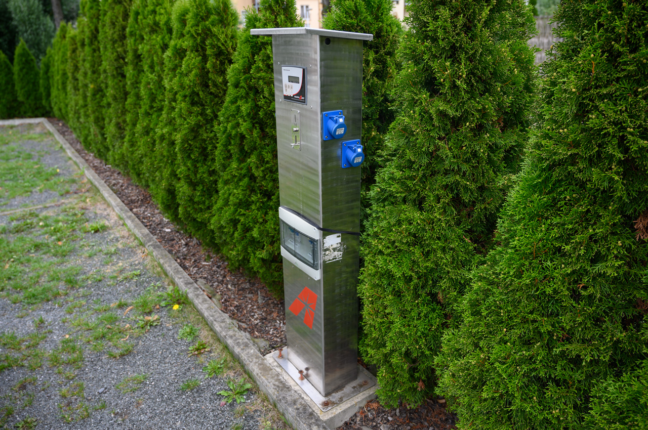 - Strom gibt es an entsprechend verteilten Säulen mit 16A Absicherung und in CEE-Ausführung.