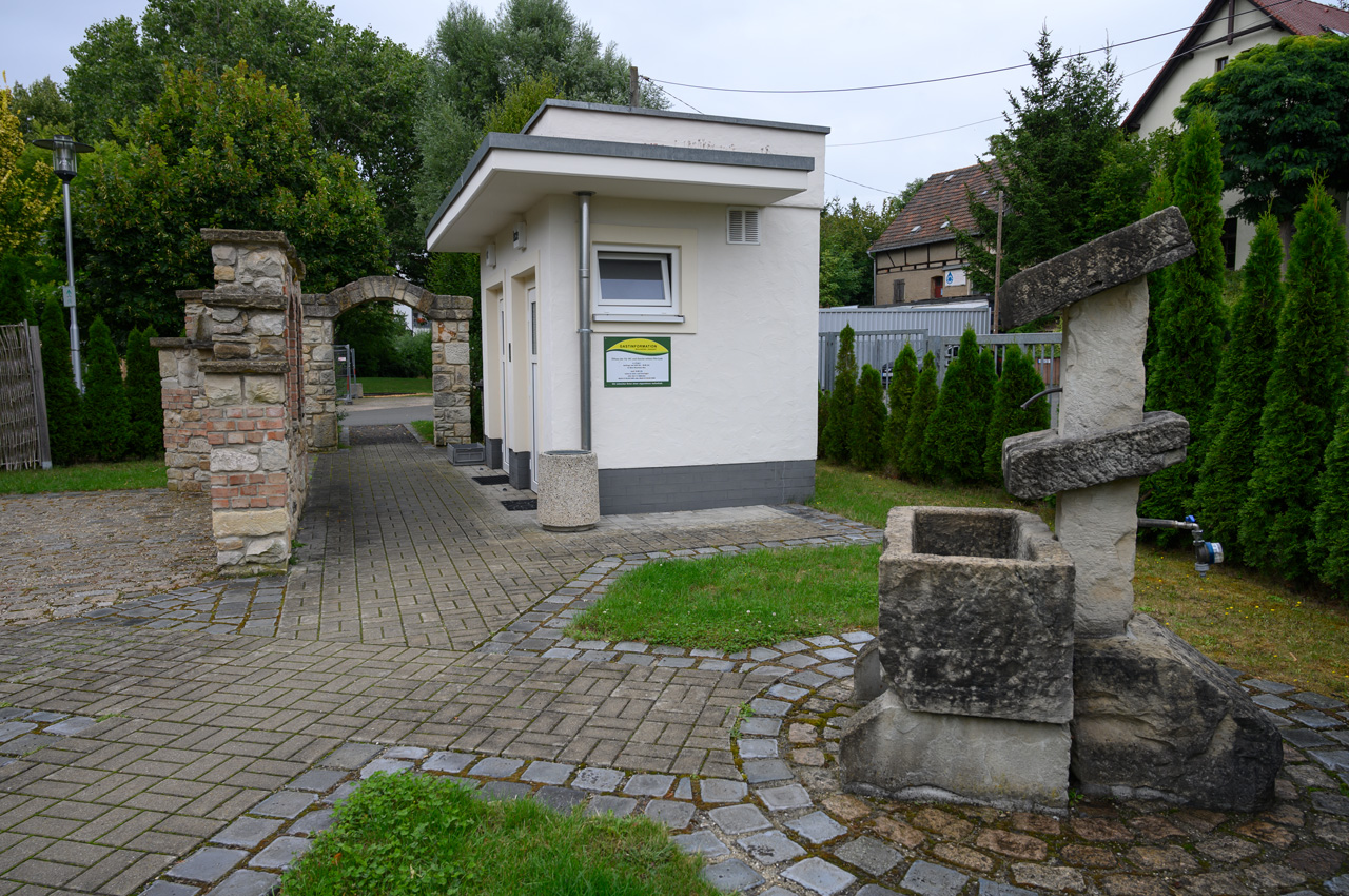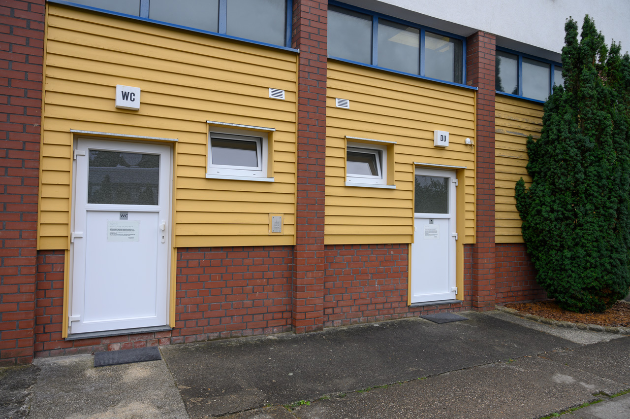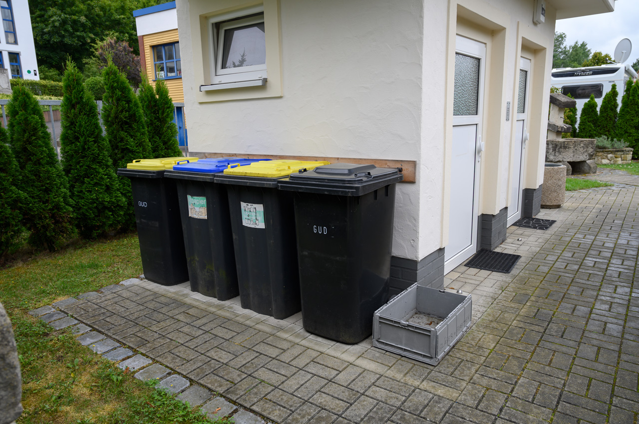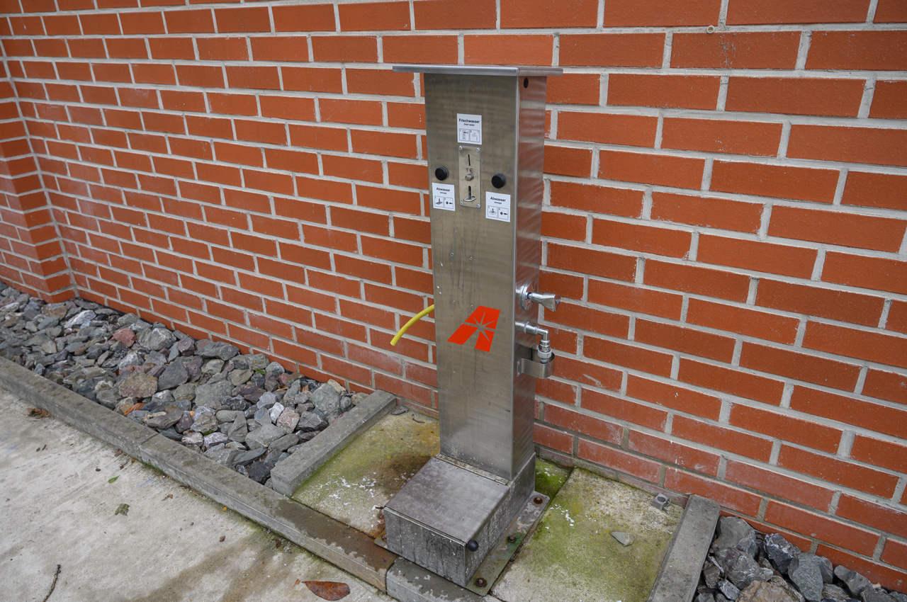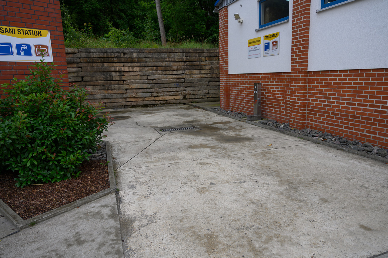 - Die V+E befndet sich an der Zufahrtsstraße zwischen zwei Bauten. Sie ist professionell gestaltet. Für die Grauwasserentleerung ist der Bodeneinlass gut anfahrbar.