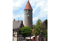 Von der mittelalterlichen Stadtbefestigung sind ein Stück des Wehrgangs sowie drei Türme erhalten: der Blasturm (15. Jahrhundert), der Färberturm (um 1300) und der Storchenturm (um 1450). Der Blasturm, 1466 erbaut und 1603 aufgestockt, erhielt seinen Namen davon, dass früher an Feiertagen die Stadtkapelle ihre Festchoräle und der städtische Musikmeister seine Kirchenlieder vom Turm erklingen ließen. Der Färberturm (auch Diebsturm genannt) gehörte zu dem 1827 abgebrochenen Weißenburger Tor. Der Storchenturm (auch Drei-Brüder-Turm genannt) wurde im Dreißigjährigen Krieg schwer beschädigt und im 18. Jahrhundert als Wohnhaus umgestaltet; er befindet sich heute in Privatbesitz.