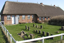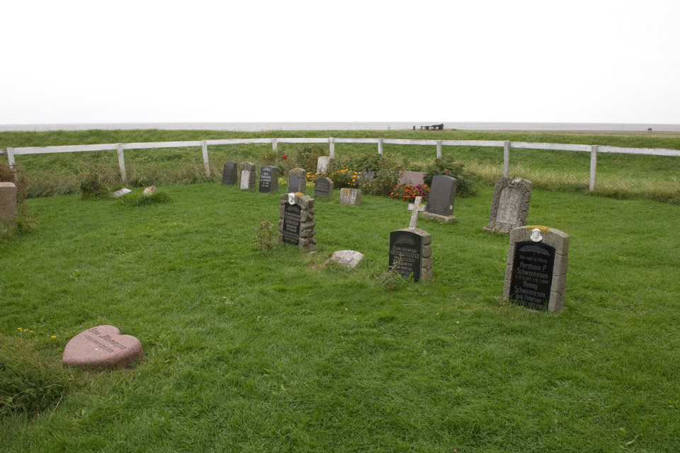 Nicht leicht läßt sich etwas Schreckhafteres denken, als eine Sturmnacht auf einer kleinen Erdscholle mitten in der See, wenn schäumende Wogen die Mauern durchbrechen und die Bewohner im Giebel des Hauses Schutz suchen müssen. Und damit auch das Schauerliche dem Schreckensvollen nicht fehle, so erzählt man aus der Mitte des vorigen Jahrhunderts von dem Pastorat der Hallig Gröde, daß damals eine Sturmfluth die Särge aus den Gräbern riß; sie stießen mit den Wogen gegen die Wände des Hauses und drangen in’s Zimmer. „So kamen im Geheule des Sturmes die Todten, um die Lebenden zu rufen“. Ort in Google Map anzeigen! |
