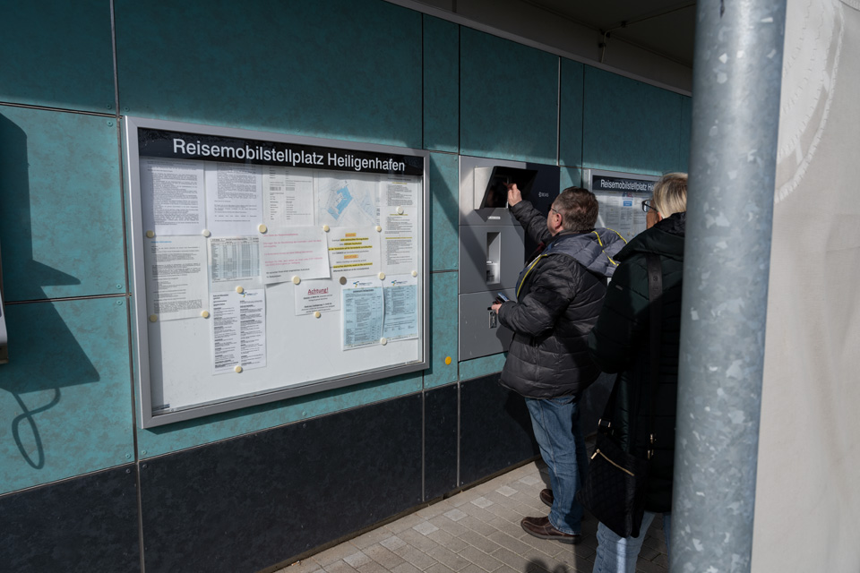 - Die Bezahlung erfolgt an entsprechenden Automaten und bargeldlos. Mit der Bezahlung erhält man auch die Kurkarte. Der Betrag für die Stellplatzgebühren und einer Aufladung der Karte wird bei Ankunft bezahlt. Die Verbrauchsdaten können zurückgebucht werden, die Standgebühren nicht.