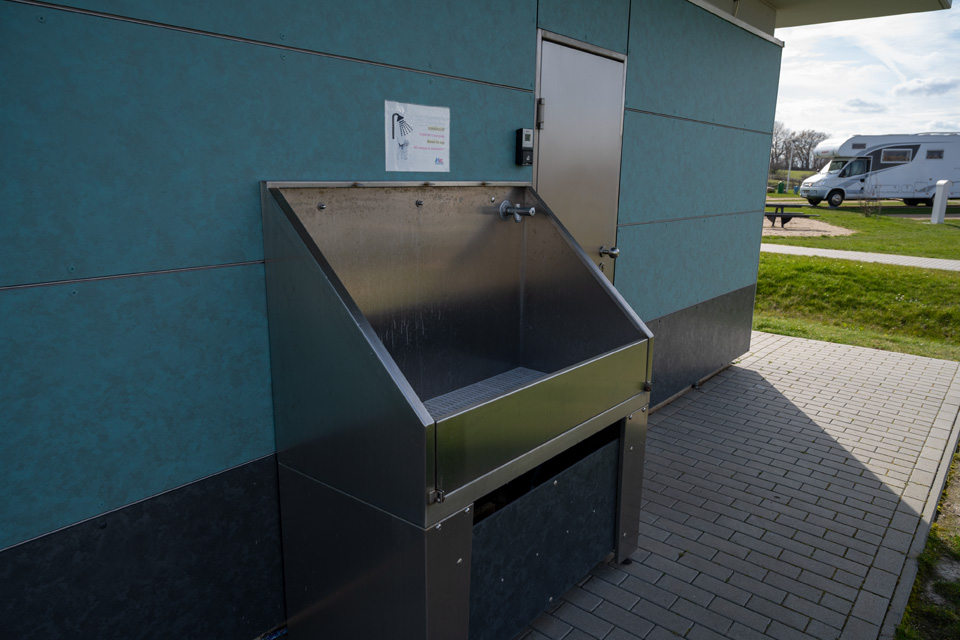 - Es gibt zwei V+E Stationen, die beide vorbildlich ausgestattet sind. Der Bodeneinlass für Grauwasser ist jeweils gut anfahrbar.