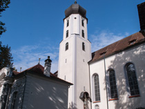 Die ehemaligen Stiftskirche St. Johannes Baptist hat einen Turm von 1484, wurde aber im Jahr 1780 nach Plänen des Haigerlocher Baumeisters Christian Großbayer umgebaut. Sie erhielt dabei ihre heute weitestgehend klassizistische Form. Das Gebäude weist ein beeindruckenden Hochaltar auf. Die Nonnenempore zeigt ein kunstvolles Gitter aus Zweigen und Pappmaché. |