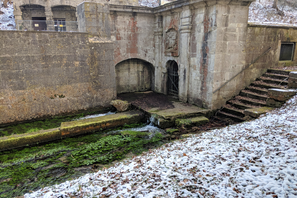 08.02.2018: Wir sind zu der Quelle vom Musikinstrumentenmuseum aus gelaufen. Der Ort macht einen leicht heruntergekommenden Eindruck.