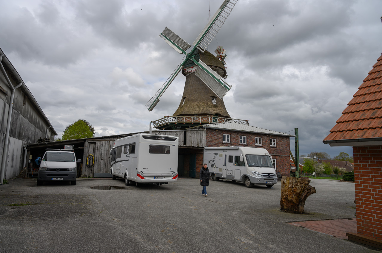 - vom 26. bis 28.04.2023: Die eigentliche Stellplatzwiese kann z. Zt. nicht genutzt werden, weil durch die andauernden Regenfälle der letzten Tage sie zu matschig ist. Wir stehen vor der alten Scheune direkt an der Mühle.