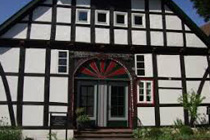Fachwerkbauten, ein-oder zweigeschossig, auf massiven Sockelgeschossen, Walmdächer, Westseite verschiefert oder verbrettert und ein Wappenstein der adligen Bauherren, meist über dem Hauseingang.