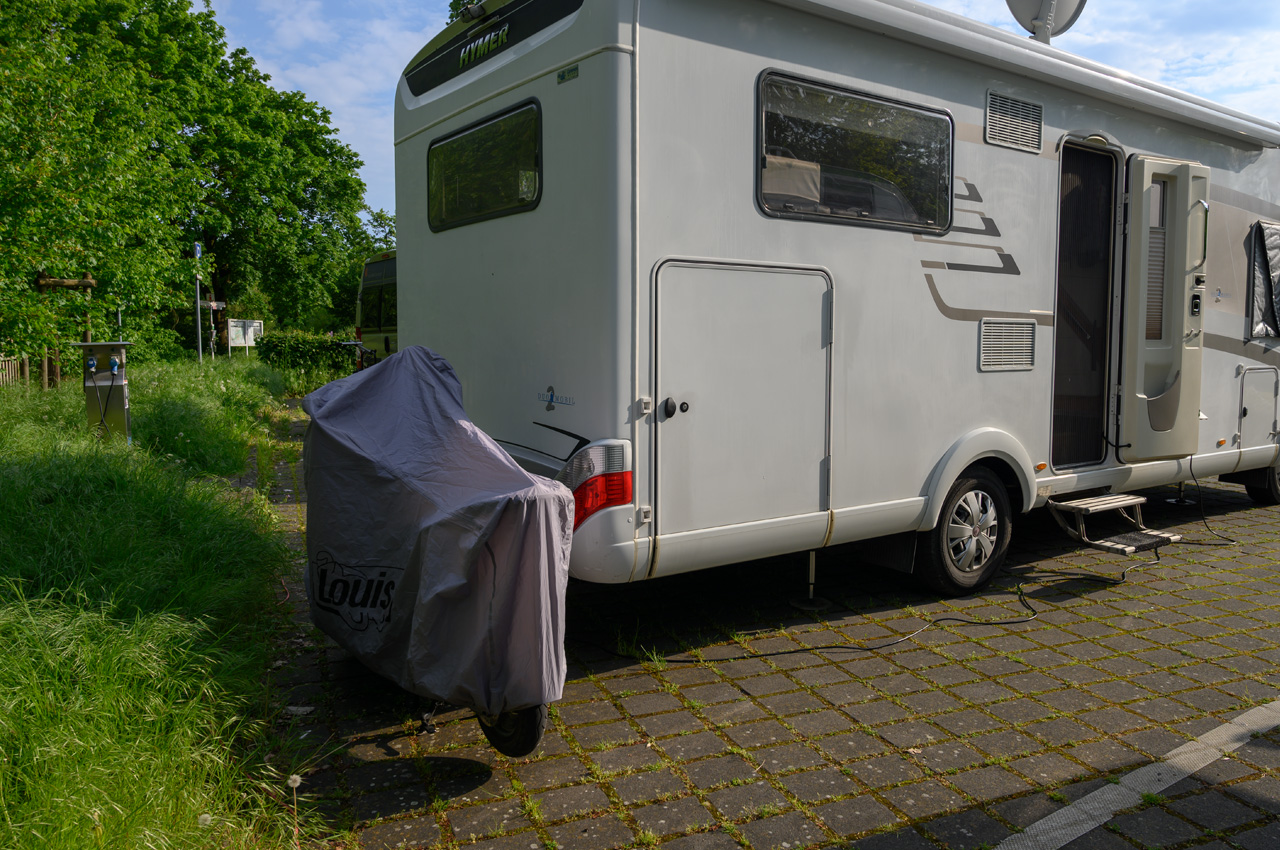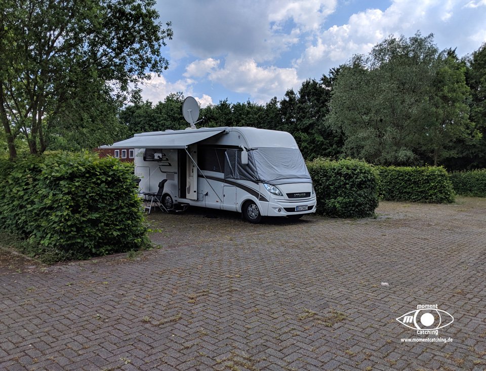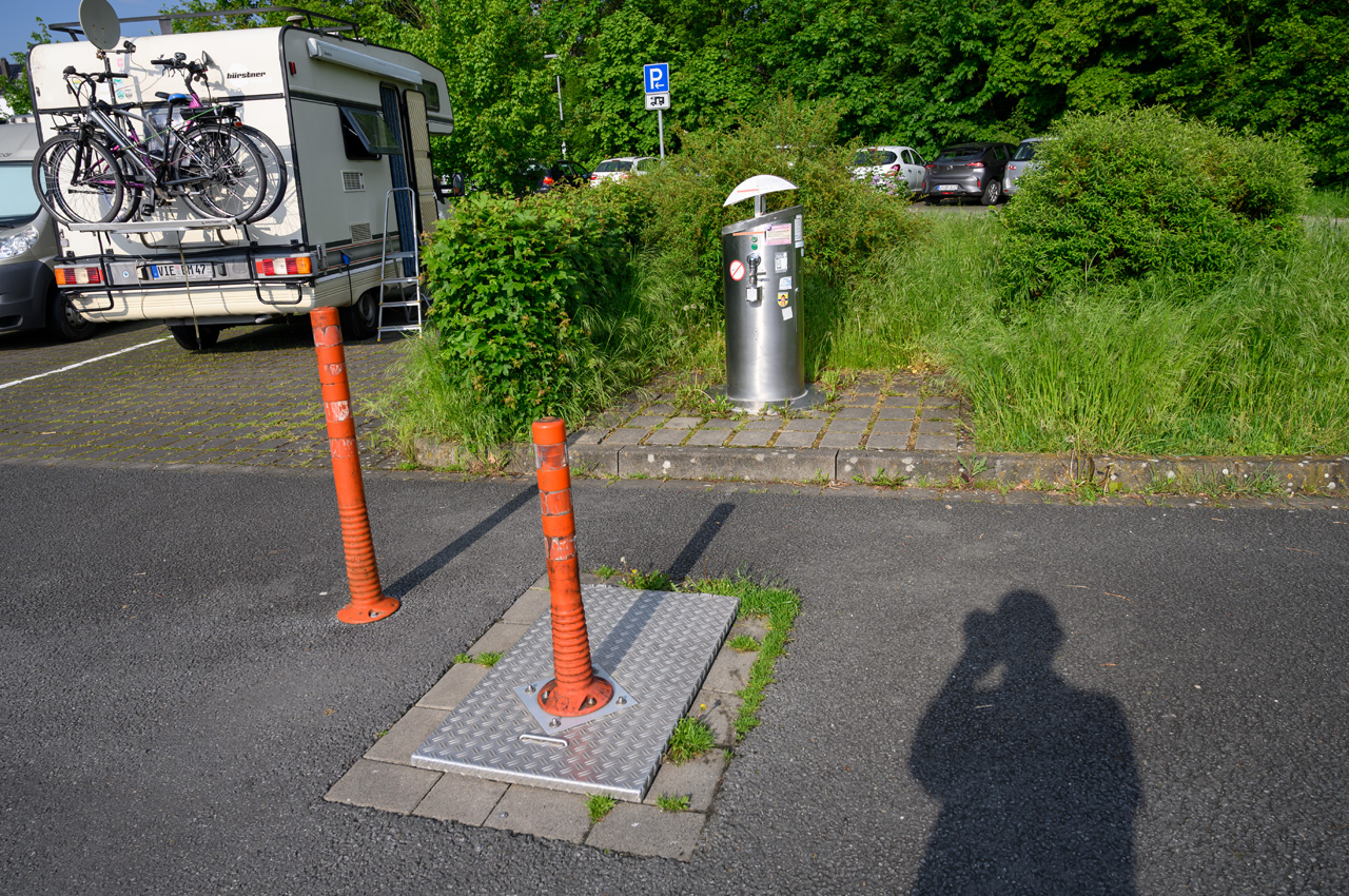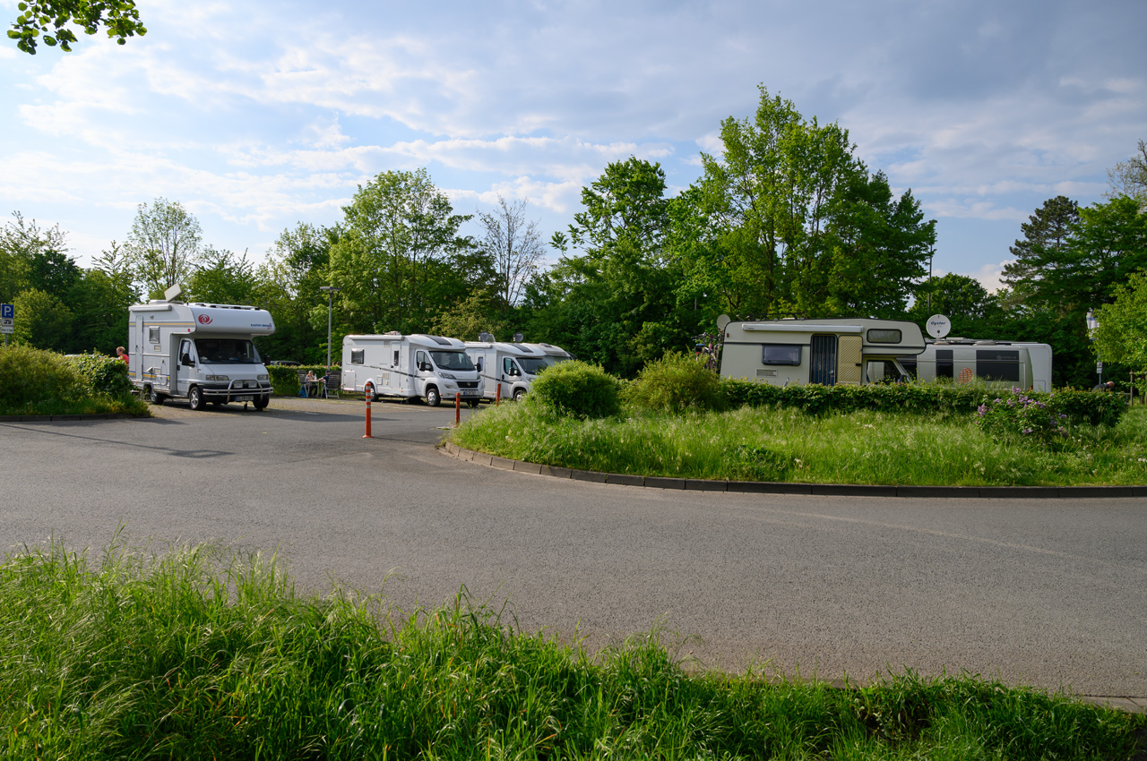 Die Stellflächen sind nicht übermäßig geräumig, aber wenn man sich geschickt hinstellt, kann man sogar Campingmöbel ausbringen. Der Platz hat nichts mit dem Schwimmbad zu tun, das befindet sich auf der anderen Straßenseite. Wenn man zu dem nahegelegenem Bäcker möchte, muss man in die entgegengesetzte Richtung wie in die Altstadt gehen. Die Entsorgung ist nicht sehr geschickt gelöst. Der Kassettenspülanschluss ist nur ca. 30 cm über der Bodenroste. Um die Kassette spülen zu können, muß man die Spültaste an der Säule betätigen. Dann gibt es aber auch eine kräftige Berieselung der Bodenroste. Die Kassette mit Spülwasser zu befüllen ist ohne, dass die Kassette auch von außen gewässert wird, eine echte Herausforderung.