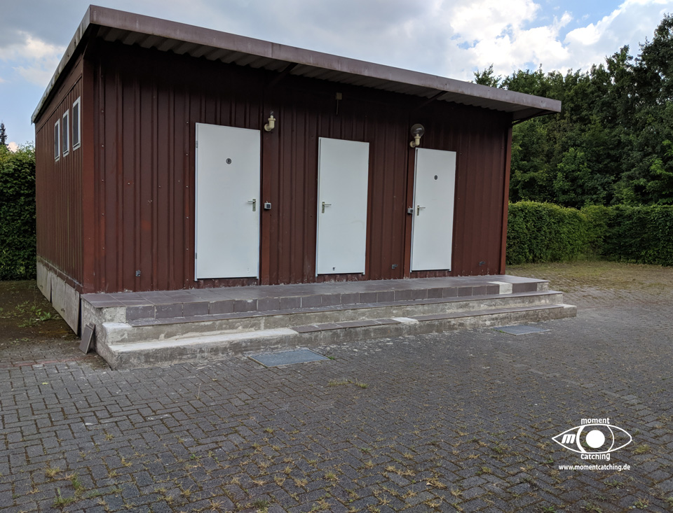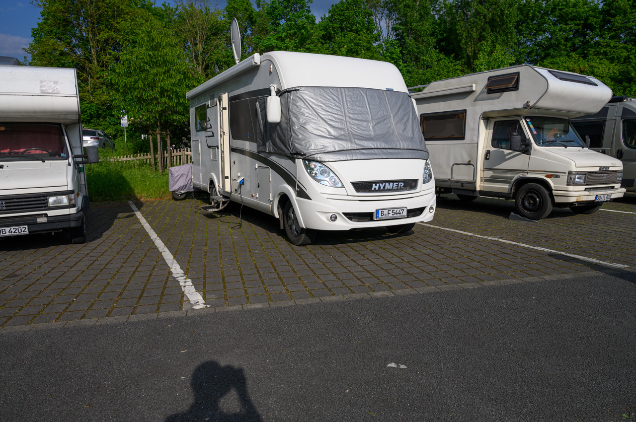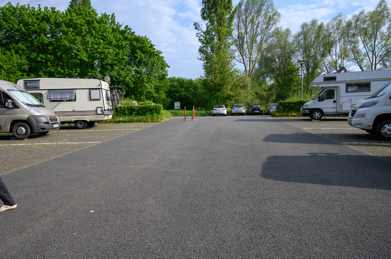 - Die Stellflächen sind am Rande eines Parkplatzes von dem Schwimmbad. Sie sind entsprechend ausgewiesen. Die einzelnen Standflächen sind durch weiße Streifen markiert.